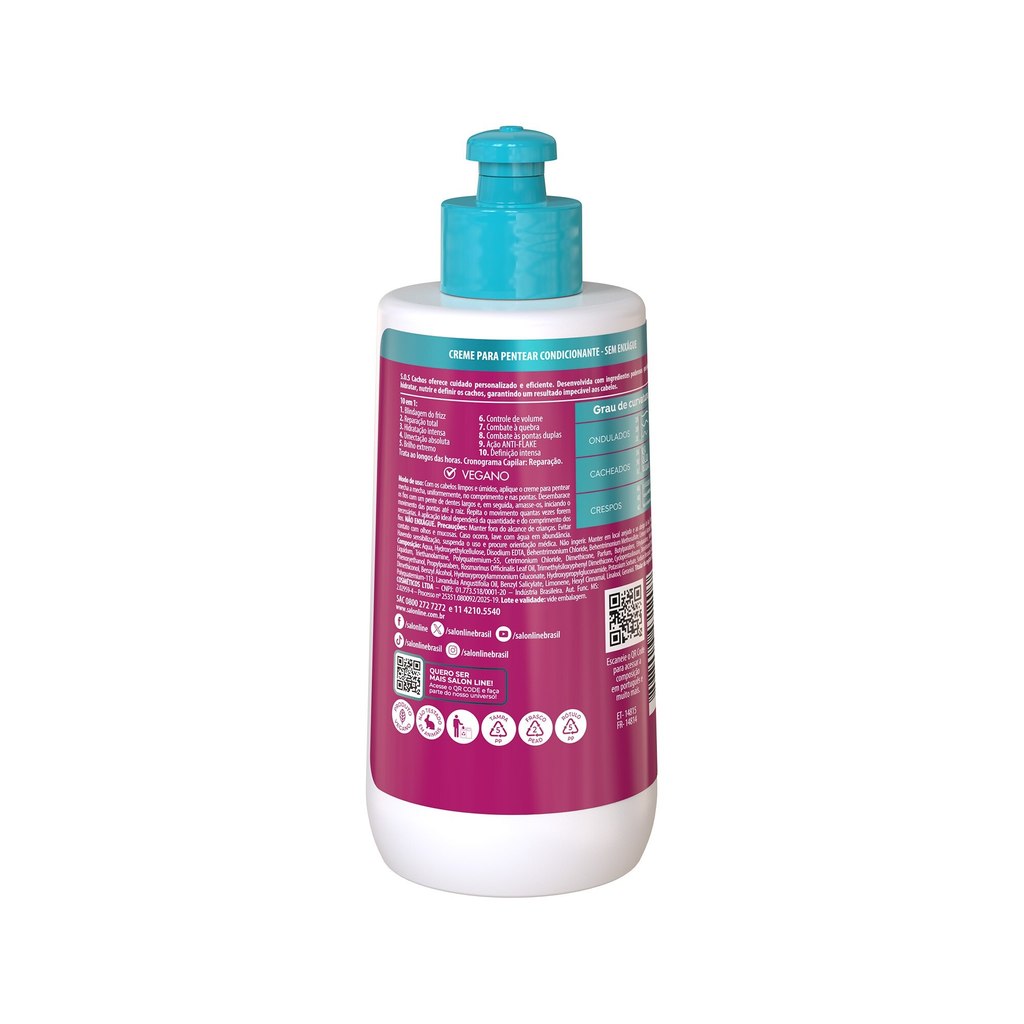 O Creme para Pentear S.O.S Cachos + Poderosos foi especialmente formulada com ativos inteligentes e tecnológicos que tratam o seu cabelo ao longo das horas. Além disso, essa poderosa combinação recupera, trata e reconstrói os fios danificados. INDICAÇÕES Para quais tipos de cabelo? Cabelos cacheados e cabelos crespos. Qual a indicação? Cabelos danificados, cabelos fragilizados e ressecados. Pode usar a partir de quantos anos? A partir de 12 anos. ATIVOS Quais os principais ativos? Microqueratina: tem a finalidade de reparação e ação nutritiva. Ativa o brilho e promove maciez aos cabelos danificados. Silicone: proporciona banho de brilho no cabelo e sedosidade aos fios, além de formar uma película protetora, deixando os cachos brilhantes, os cabelos macios, hidratados e com as pontas seladas. Proteína do arroz: promove a reposição da estrutura interna e externa das fibras capilares danificadas. MODO DE USO Qual a melhor forma de usar? Com o cabelo limpo e úmido, aplique o Creme para Pentear Salon Line mecha a mecha, uniformemente, do comprimento às pontas. Se desejar mais controle do volume, aplique também próximo da raiz. Desembarace os fios com um pente de dentes largos e, em seguida, amasse-os iniciando o movimento das pontas até a raiz. Repita o movimento quantas vezes forem necessárias, auxiliando na formação dos cachos. A quantidade ideal a ser aplicada dependerá da quantidade de cabelo e do comprimento dos fios. Dicas de uso Para melhores resultados, use o shampoo, o condicionador, a máscara hidratante e o ativador de cachos S.O.S Cachos+Poderosos Salon Line. CARACTERÍSTICAS É produto vegano? O Creme para Pentear S.O.S Cachos + Poderosos é vegano. É liberado? O Creme para Pentear S.O.S Cachos + Poderosos não é liberado.