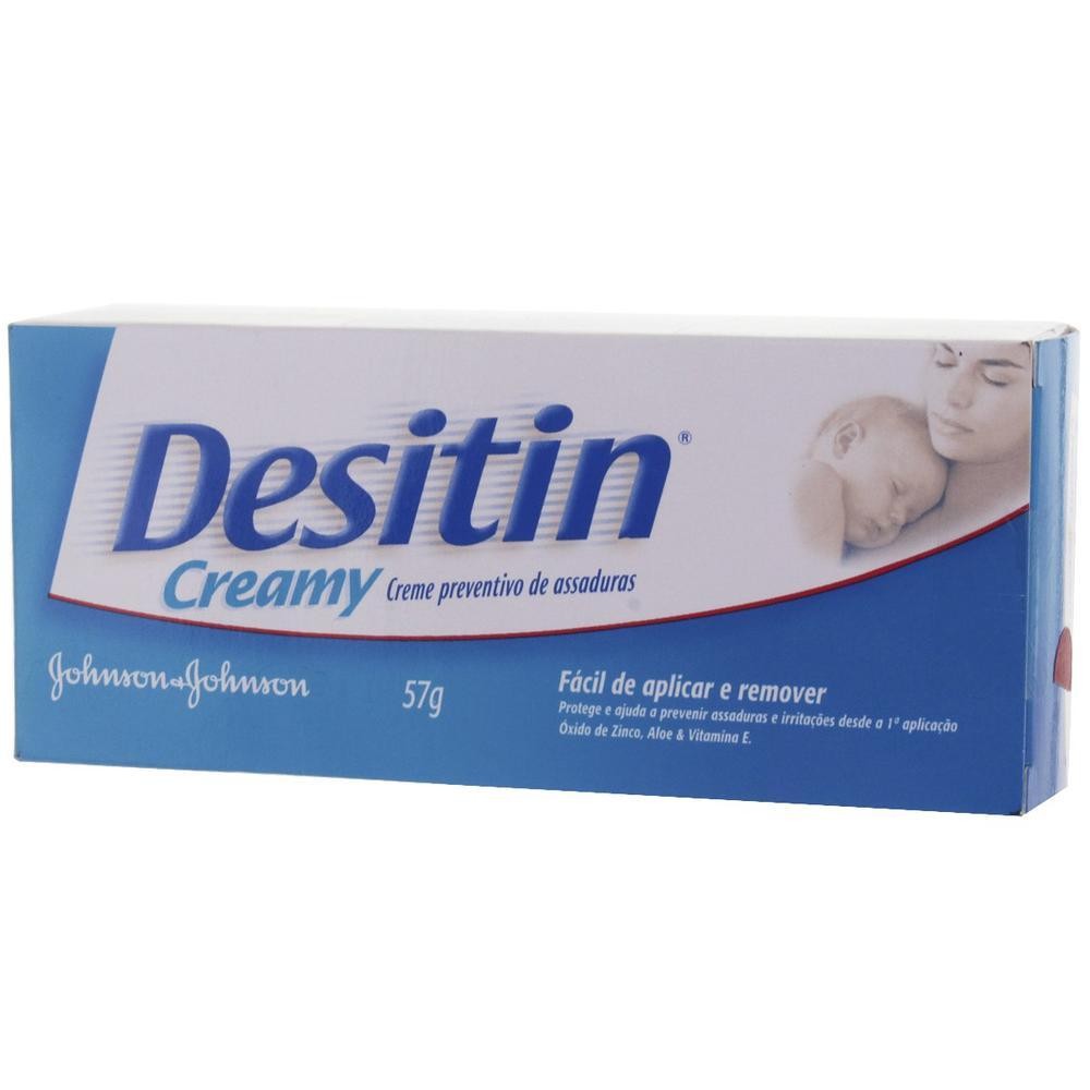 Creme Preventivo de Assaduras Desitin Creamy - Proteção e Cuidado para a Pele do Bebê O Desitin Creamy é um creme preventivo de assaduras desenvolvido para proteger a pele sensível do bebê. Sua fórmula rica e suave proporciona uma barreira protetora contra a umidade, prevenindo a formação de assaduras e garantindo que a pele do seu bebê fique sempre saudável, hidratada e confortável. Benefícios: - Prevenção de Assaduras: Forma uma barreira eficaz contra a umidade, prevenindo assaduras e irritações na pele do bebê. - Hidratação e Proteção: Contém ingredientes hidratantes que mantêm a pele do bebê macia e protegida. - Alívio Imediato: Proporciona alívio imediato para a pele irritada, reduzindo o desconforto causado pelas assaduras. - Fórmula Suave e Segura: Desenvolvido para peles sensíveis, é seguro para uso diário e adequado para bebês desde o nascimento. - Teste Dermatológico: Dermatologicamente testado, garantindo a segurança e a eficácia para a pele delicada do bebê. Como usar? 1. Troque fraldas molhadas ou sujas imediatamente 2. Limpe bem a área da fralda. 3. Deixe a pele secar completamente. 4. Aplique a pomada generosamente sempre que necessário, especialmente após cada troca de fralda, à noite ou sempre que o bebê ficar mais tempo com a fralda molhada. Perguntas frequentes 1. O que é e para que serve o Creme Preventivo de Assaduras Desitin Creamy? O Desitin Daily Defense Cream é um creme preventivo de assaduras que forma rapidamente uma camada protetora sobre a pele do bebê, aliviando o desconforto das assaduras e proporcionando alívio imediato desde o primeiro uso. 2. Como surgem as assaduras? A assadura é um conjunto de inflamações da pele que atingem a área do corpo coberta pela fralda, podendo manifestar-se por meio de pequenas lesões avermelhadas associadas a inchaço e leve descamação. Elas podem ser desencadeadas pelo aumento da temperatura e umidade devido ao uso de fraldas, pelo contato prolongado com fezes e urina ou por lesões na pele que facilitam a entrada de microrganismos. Compre na as Pomadas Preventivas de Assaduras Desitin. Garantir o conforto e a proteção da pele sensível do seu bebê nunca foi tão fácil! As Pomadas Preventivas de Assaduras Desitin são a solução ideal para evitar irritações e assaduras causadas pelo uso prolongado de fraldas.