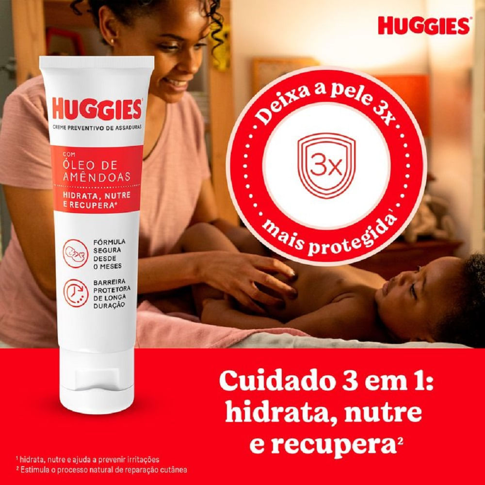 O que é e para que serve o Creme Preventivo de Assaduras Huggies Supreme Care Óleo de Amêndoas? O Creme Preventivo de Assaduras Huggies Supreme Care Óleo de Amêndoas foi desenvolvido para oferecer proteção completa à pele sensível do bebê, ajudando a evitar irritações causadas pelo uso contínuo de fraldas. Sua fórmula foi cuidadosamente elaborada com vitamina E, óxido de zinco e óleo de amêndoas, ingredientes conhecidos por suas propriedades hidratantes, calmantes e protetoras. Indicado para o cuidado diário desde os primeiros dias de vida, o creme para assaduras Huggies Supreme Care cria uma barreira protetora que auxilia na prevenção de assaduras provocadas pelo contato da pele com urina e fezes. Além disso, sua composição hipoalergênica e dermatologicamente testada contribui para manter a pele do bebê saudável, macia e bem cuidada a cada troca de fralda. Benefícios do Creme Preventivo de Assaduras Huggies Supreme Care Ajuda a proteger a pele delicada do bebê desde o nascimento. Auxilia na prevenção e cuidado das assaduras durante o uso de fraldas. Promove hidratação, nutrição e recuperação da pele em uma única aplicação. Forma uma barreira protetora contra urina e fezes. Possui textura suave, facilitando a aplicação e espalhabilidade. Fórmula enriquecida com vitamina E, óxido de zinco e óleo de amêndoas. Produto hipoalergênico e dermatologicamente testado, ideal para peles sensíveis. Como usar o Creme Preventivo de Assaduras Huggies Supreme Care Óleo de Amêndoas 80g? Lave bem as mãos antes de iniciar a troca da fralda. Realize a higienização cuidadosa da pele do bebê. Aplique uma quantidade adequada do creme para assaduras Huggies Supreme Care. Espalhe delicadamente, massageando a região. Garanta uma camada protetora uniforme em toda a área coberta pela fralda. Após a aplicação, lave novamente as mãos. Advertências Produto indicado para uso externo. Não ingerir. Mulheres grávidas devem utilizar somente com orientação médica. Evite contato com os olhos. Caso ocorra, lave com água em abundância. Se surgirem sinais de irritação, interrompa o uso e procure orientação médica. Conservar em temperatura ambiente entre 15ºC e 30ºC. Manter o produto fora do alcance das crianças. Informações Adicionais do Fabricante Cuide da pele do seu bebê com o Creme Preventivo de Assaduras Huggies. Sua fórmula hipoalergênica e dermatologicamente testada, composta por ingredientes de origem natural, combinação óleo de amêndoas, óxido de zinco e vitamina E, criando uma barreira protetora de longa duração que ajuda a manter a pele protegida e hidratada desde a primeira passada. Com textura suave, sem parabenos e corantes, é o aliado essencial para o dia a dia na troca da fralda, proporcionando conforto e cuidado contínuo para a pele delicada do bebê. Agora, com cuidado 3 em 1, que hidrata, nutre e ajuda na recuperação* da pele, é ideal para uso diário e para acompanhar cada momento da rotina com segurança e carinho. *Estímulo ao processo natural de peças originais.