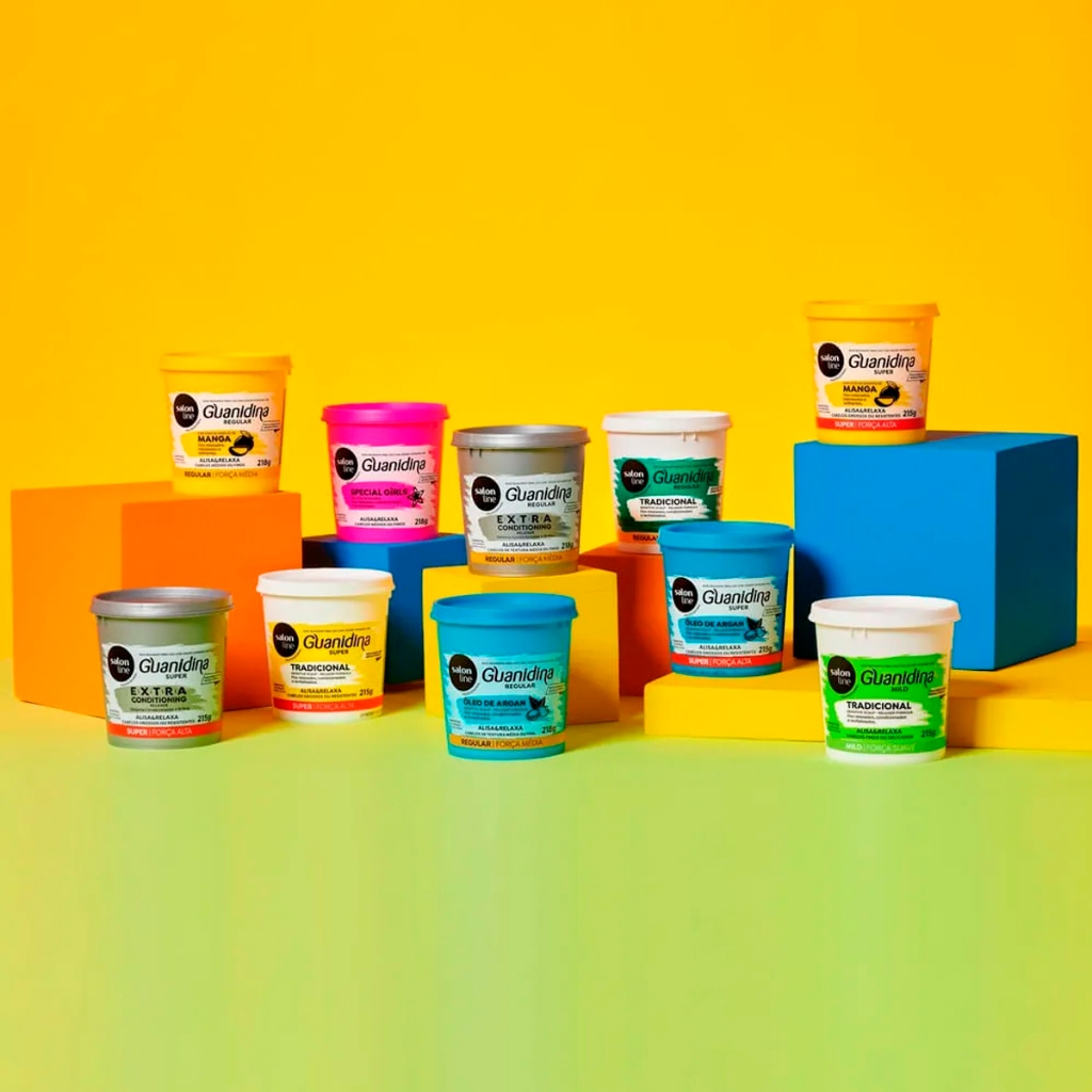 Guanidina Tradicional Alisa e Relaxa Super Forte 215g Salon Line - 1 Unidade Salon Line Guanidina Super Forte alisa, relaxa e reduz o volume dos cabelos, deixando-os mais lisos e soltos. Sua fórmula proporciona um resultado rápido e eficiente, além de conter Lanolina, que promove emoliência, hidratação e umectação aos fios. - Fórmula com Complexo Sensitive Scalp e Lanolina. - Compatível com Hidróxido de Sódio e Lithium. Modo de Uso: DICAS IMPORTANTES PARA UM RESULTADO SEGURO: 1 - Antes de iniciar o processo, espalhe o Keratin Hair Food Salon Line na testa, orelhas e por toda a região do couro cabeludo, principalmente nas linhas de separação do cabelo, para evitar contato do relaxamento com a pele. 2 - Não pule nenhuma etapa do processo. 3 - Use luvas durante todo o processo de aplicação do produto. 4 - Faça primeiramente o teste de mecha antes de aplicar o produto para se assegurar que o cabelo pode receber e verificar o tempo de aplicação. 5 - Não utilize Shampoo Anti-caspa por pelo menos 3 dias antes. * Atenção: após definir qual seu tipo de cabelo e o tempo adequado para realizar o processo desejado, siga corretamente as etapas de aplicação nunca ultrapassando o tempo indicado na embalagem, caso contrário não vai obter o resultado desejado. Comece a contar o tempo a partir do momento que a aplicação do produto for iniciada. ETAPA 1: INICIANDO A APLICAÇÃO A) Antes de iniciar o processo, espalhe o Keratin Hair Food Salon Line na testa, orelhas e por toda a região do couro cabeludo, principalmente nas linhas de separação do cabelo, para evitar contato do Creme com a pele. B) Com o cabelo desembaraçado, divida-o em quatro partes com prendedores não metálicos. Caso seja profissional cabeleireiro e tenha experiência no processo de relaxamento, pode dividir o cabelo em mais de 4 partes, conforme a sua preferência. C) Com um pente de dente fino inicie a aplicação pela nuca, no 1º primeiro quadrante distribuindo o produto em mechas finas da raiz até a metade do cabelo evitando encostar no couro cabeludo. Mantendo a distância de 0,5 cm da raiz. A aplicação do creme relaxante na raiz deve ser feito de forma suave com o pente, a fim de assegurar um efeito natural. Não tracione a raiz. D) Após aplicar o produto em todas as mechas do primeiro quadrante passe para os quadrantes seguintes repetindo o mesmo processo de aplicação. E) Ao terminar a aplicação volte ao 1º quadrante e usando um pente de dentes médios, aplique o produto do comprimento até as pontas. F) Continue o procedimento em todos os quadrantes até que todo o cabelo tenha recebido o produto. Deixe o produto de acordo com o tempo indicado no seu teste de mecha. ATENÇÃO: Caso seu tempo esteja acabando e você ainda não terminou de aplicar o creme em todos os quadrantes, volte ao 1º quadrante e já enxague. Caso contrário o cabelo poderá ficar liso. IMPORTANTE: Após aplicar o creme não prenda com presilhas. Deixe as mechas soltas, pois as presilhas marcam e quebram e os fios. Caso tenha dúvidas sobre qual tipo de pente usar, use sempre o de dentes mais largos. Caso ultrapasse o tempo indicado no seu teste de mecha para o seu tipo de cabelo poderá não obter o resultado desejado. Não passe o pente com força demasiada, pois poderá deixar os seus fios lisos ou quebradiços. Este procedimento não substitui um permanente afro. ETAPA 2 : ENXÁGUE NEUTRALIZAÇÃO A) Enxágue o cabelo completo, cuidadosamente, com água morna ou temperatura ambiente. Certifique-se de que todo o relaxamento tenha sido removido de todas as áreas aplicadas. Evite a região dos olhos enquanto enxágua. Enxágue três (3) vezes seguindo o mesmo processo de APLICAÇÃO com duração de três (3) a quatro (4) minutos por parte, certificando-se de que o relaxamento saiu. B) O Neutralizing Shampoo Salon Line com indicador de cor é indispensável para a remoção total de resíduos, também irá alertá-lo do local onde o relaxamento não foi retirado completamente. Verifique a cor do shampoo para saber onde ainda se encontram resíduos de produto no cabelo. Lave o cabelo até que a espuma esteja completamente branca. Em seguida, enxágue bem e siga para a ETAPA 3. ETAPA 3: CONDICIONAMENTO E FINALIZAÇÃO Depois que o relaxamento, a neutralização e o enxágue forem completados corretamente, aplique um Condicionador Salon Line de sua preferência. Faça a distribuição uniforme do produto por todo o cabelo. Deixe-o agir por (5) minutos. Enxágue bem com água morna, seque com uma toalha e finalize como desejar. RETOQUE: Será necessário repetir o processo conforme os cabelos forem crescendo. Recomenda-se que uma nova aplicação aconteça em 90 dias (tempo necessário para o crescimento de pelo menos 3 cm da raiz). Quando realizar o retoque aplique o produto somente na área do novo cabelo, ou seja, do crescimento. Sem levar o produto para o comprimento e pontas. Siga as etapas de aplicação. NÃO SE ESQUECER DE APLICAR KERATIN HAIR FOOD PARA PROTEGER AS ÁREAS DE TRANSIÇÃO (DO COMPRIMENTO AS PONTAS). Para m