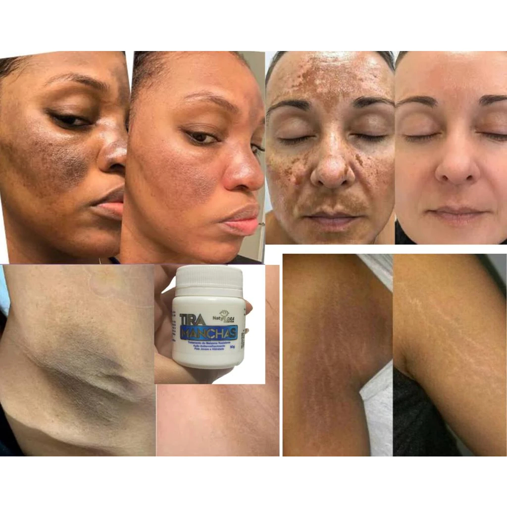 Contém 1 item 1 Creme Tira Manchas 50g ## Pomada Tira Manchas - NatyFlora A Pomada Tira Manchas NatyFlora, tem ação clareadora e rejuvenescedora, com ativos como Dexpantenol, Ácido Kójico e Vitamina C. Que protegem a pele do ressecamento e ajudam na renovação natural. A Pomada Tira Manchas Natyflora com Ácido Kójico é uma excelente opção para clarear áreas da pele como axilas, virilhas pescoço e rosto. Essas áreas são frequentemente propensas à hiperpigmentação e manchas escuras devido a vários fatores, como fricção constante, depilação e exposição ao sol. BENEFÍCIOS - Hidratação e brilho a pele - Reduz rugas e previne o aparecimento de novas - Ideal para todos os tipos de pele - Melhora a textura da pele - Diminuição das manchas de acne melasma sardas - Proporciona efeito LIFT instantâneo - Antienvelhecimento Enviamos em até 12 horas.