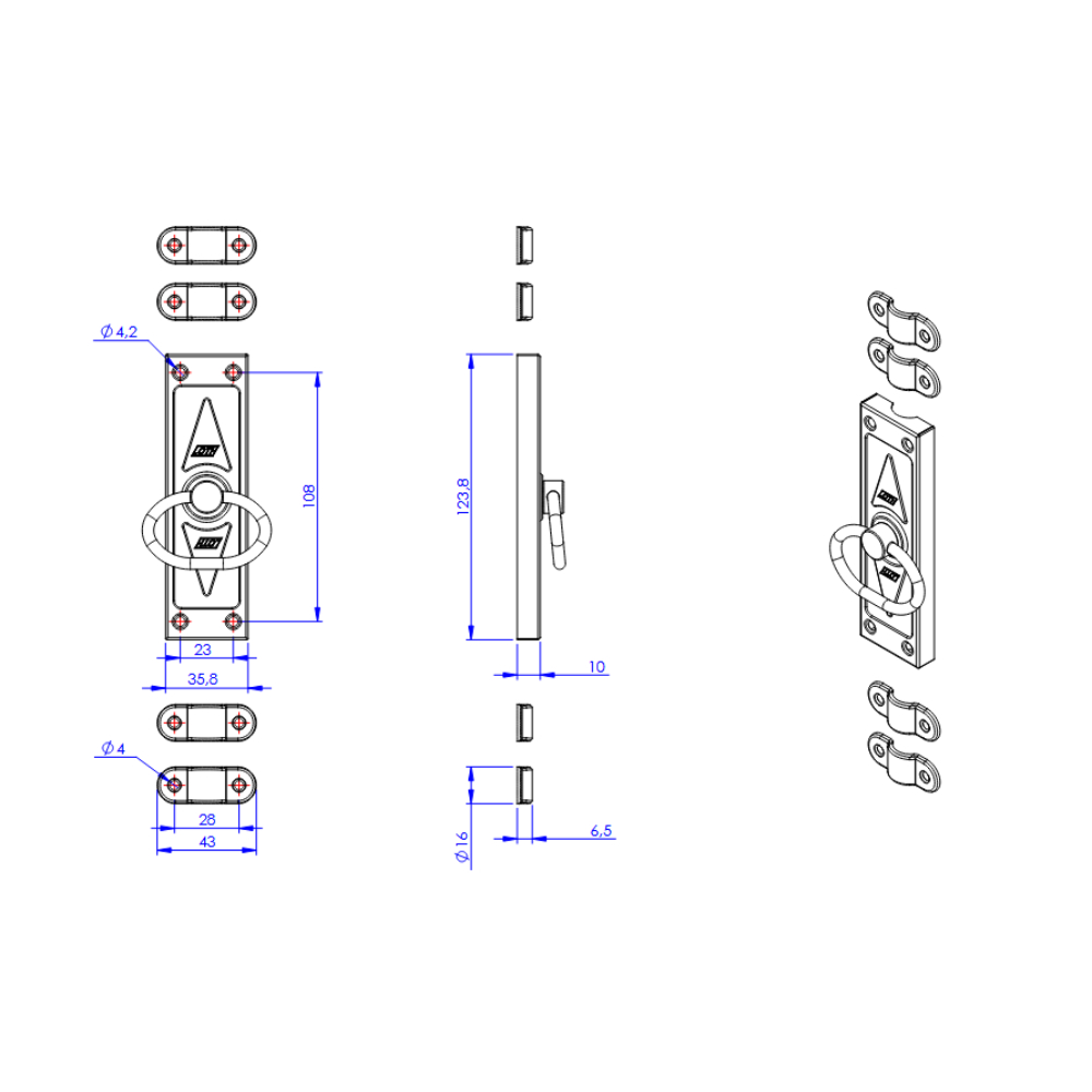 Cremona Retangular para Janela com 4 Guias | Loth – Fecho para Janela