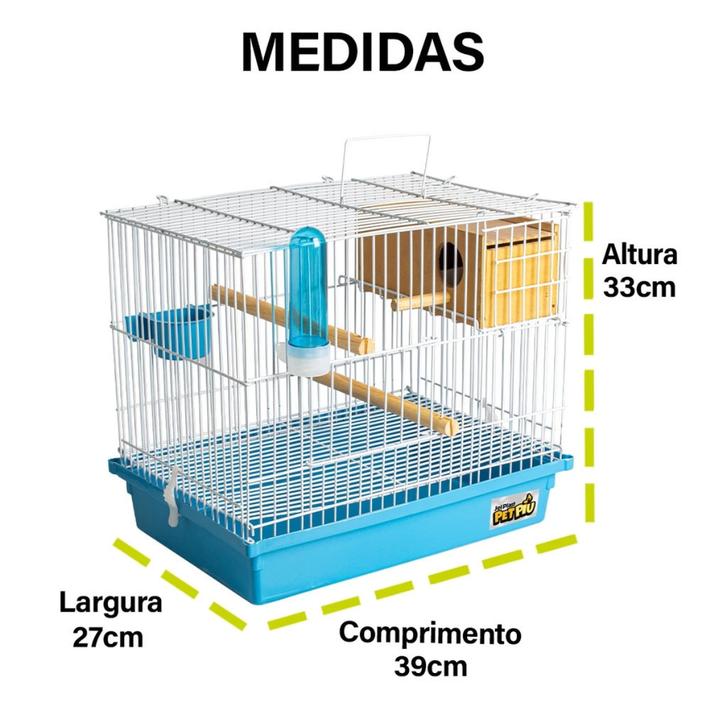 Criadeira de Periquito Metal e Plástico Jel Plast Pet Piu Modelo: 04600 A Criadeira de Periquito em Metal e Plástico da Jel Plast Pet Piu é um item essencial para quem se dedica à criação e cuidados de periquitos. Esta criadeira é projetada para fornecer um ambiente seguro e confortável para os periquitos recém-nascidos ou filhotes em crescimento, proporcionando condições ideais para seu desenvolvimento saudável. Construída com uma combinação de materiais de alta qualidade, como metal e plástico resistente, esta criadeira oferece durabilidade e confiabilidade. A estrutura metálica garante estabilidade e segurança, enquanto as partes em plástico são fáceis de limpar e higienizar. A Criadeira de Periquito da Jel Plast Pet Piu é espaçosa o suficiente para acomodar filhotes, permitindo que eles se movimentem com liberdade. Possui divisórias que podem ser usadas para separar os filhotes quando necessário, promovendo um ambiente organizado e controlado. Para facilitar a manutenção e o acesso aos filhotes, esta criadeira possui aberturas de fácil alcance e um design que prioriza a ventilação adequada. Isso ajuda a criar um ambiente confortável e saudável para os periquitos em crescimento. Descrição do Produto: Acessórios que acompanham a gaiola, 1 Ninho em MDF, 1 Comedouro Plástico, 1 Bebedouro, 2 Poleiros de Madeira, 2 Presilhas Plásticas e 1 Bandeja Plástica Higiênica. Embalagem: 1 Unidade Dimensões do Produto -Comprimento: 39cm -Largura: 27cm -Altura: 33cm Material:Arame BTC, tinta em pó e resina plástica