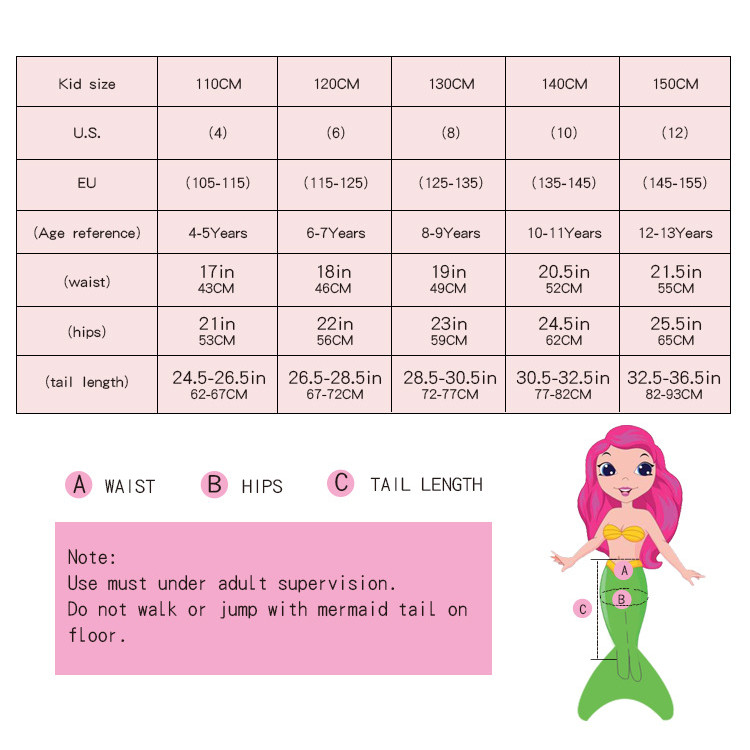 ▸Bem-vindo a seguir-nos! Receba cupons! ▸Esta mercadoria não contém Monofin. ▸A parte inferior da cauda sereia adota um design aberto, pode ser colocado em Monofin. ▸Estilos diferentes adotam diferentes métodos de fechamento diferentes, por isso é andável. ▸Podemos ver o lindo efeito tridimensional nas fotos, por causa da garotinha usava o maiô e a cauda com o Monofin. Por isso é recomendável encomendar juntos o Monofin. Este produto não contém Monofin. ✔️Tecido de roupas: Poliéster de alta qualidade (com elasticidade) ✔️Índice de espessura: Fino ✔️Material dos acessórios: Acrílico e Plástico ▸Incluído no Pacote do pacote do pacote: 1 conjunto de biquíni + 1 conjunto de biquíni + 1 peça cauda + 1 conjunto de acessórios/ou apenas cauda/ou apenas barbatanas De acordo com a sua escolha) O "Monofin" deve ser adquirido a um custo adicional e não está incluído neste produto.) ▸Esta mercadoria não contém Monofin. 👸🏻Ocasião de ajuste: ▸Toda garota tem um sonho de princesa sereia. O melhor presente de aniversário para menina que tem um sonho sereia que pode fazer seu sonho se tornar realidade! ▸Que é adequado para férias na praia, festa de aniversário temática, fotos, drama temático, festa de piscina, natação, foto, Howaii e assim por diante. 💡Material seguro: ▸Conjunto de maiô e traje sereia é confeccionado em tecido de alta elasticidade Poliéster. ▸É resistente aos efeitos desbotantes que causam pelo cloro e sal. ▸O maiô cauda sereia é confortável para a pele dos seus filhos. 📌Nota: ▸Erro de 2-3 cm devido à medição manual. Obrigado. ▸A nuances de imagens e mercadorias são normais. Por favor, entenda.
