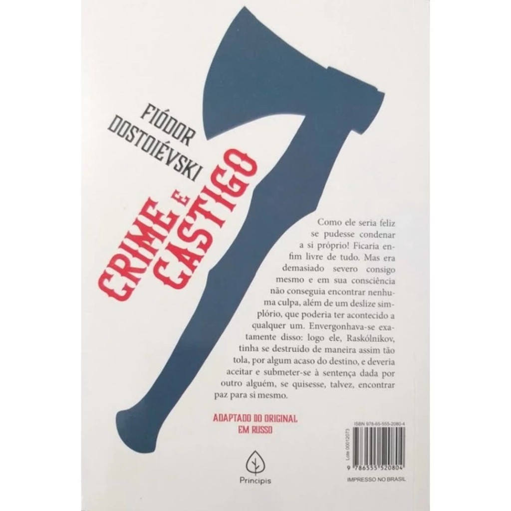 Crime e castigo | Fiódor Dostoiévski A pobreza assola Raskólnikov, que precisa pagar os estudos e o aluguel de onde mora. Orgulhoso, acredita que é inteligente o suficiente para planejar um crime perfeito, julgando que seu bom motivo e futuro promissor justificariam o ato. Os limites da moralidade comum também o atingem e ele é sentenciado. A culpa o acompanha na jornada em busca de redenção e boas perspectivas. Dostoiévski traz a psicologia criminal para este romance, abordando moralidade e a margem da dignidade nas ruas das cidades. Título: Crime e castigo Autor: Fiódor Dostoiévski Páginas: 240 Capa: Brochura Dimensões: 14 x 21 Editora: Ciranda Cultural