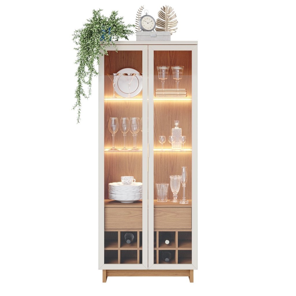 Cristaleira 2 Portas 1 Gaveta com Adega Guanabara Móveis Off White/Freijó