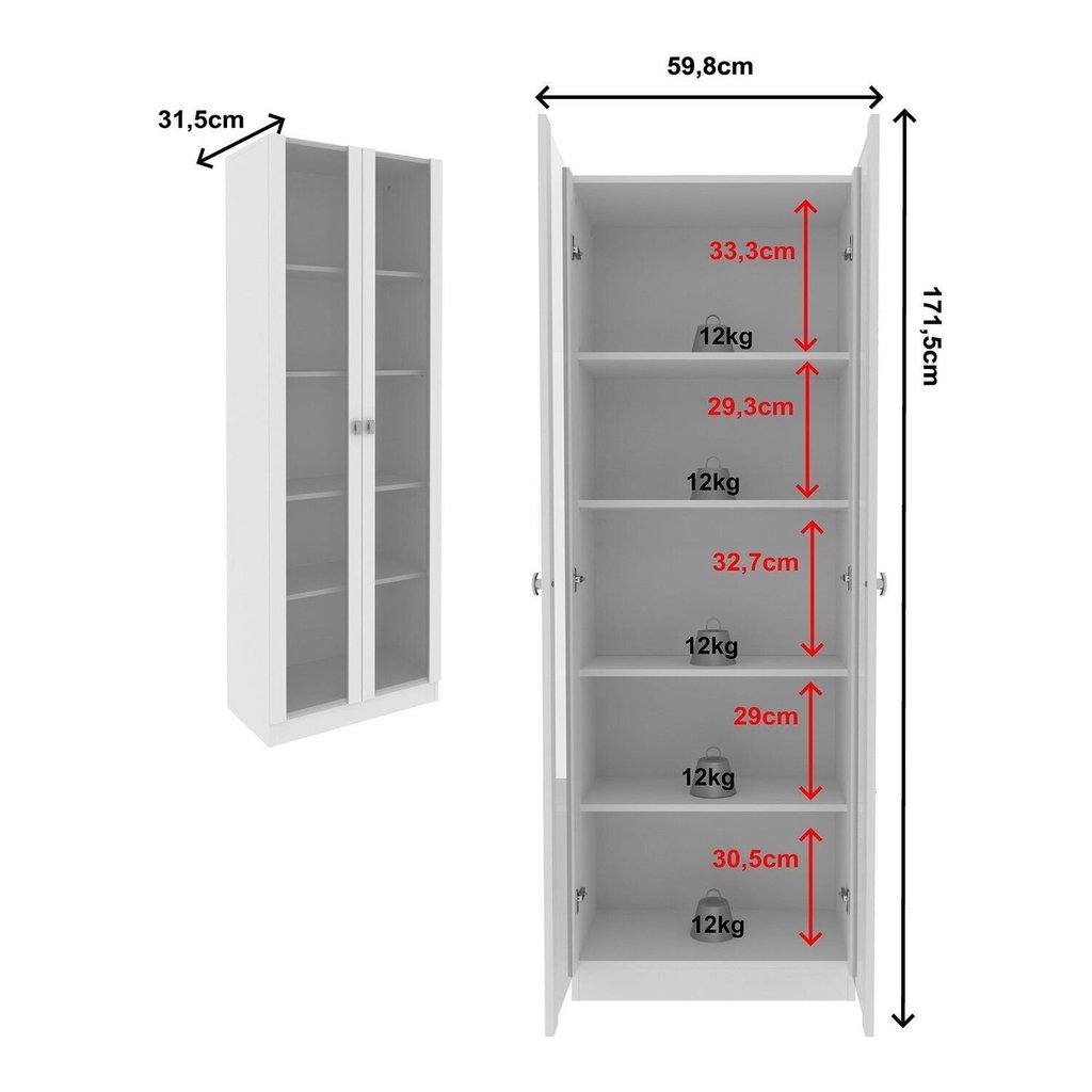 Cristaleira 2 Portas de Vidro 4 Prateleiras 171,5cmx59,8cm Branco Catarina