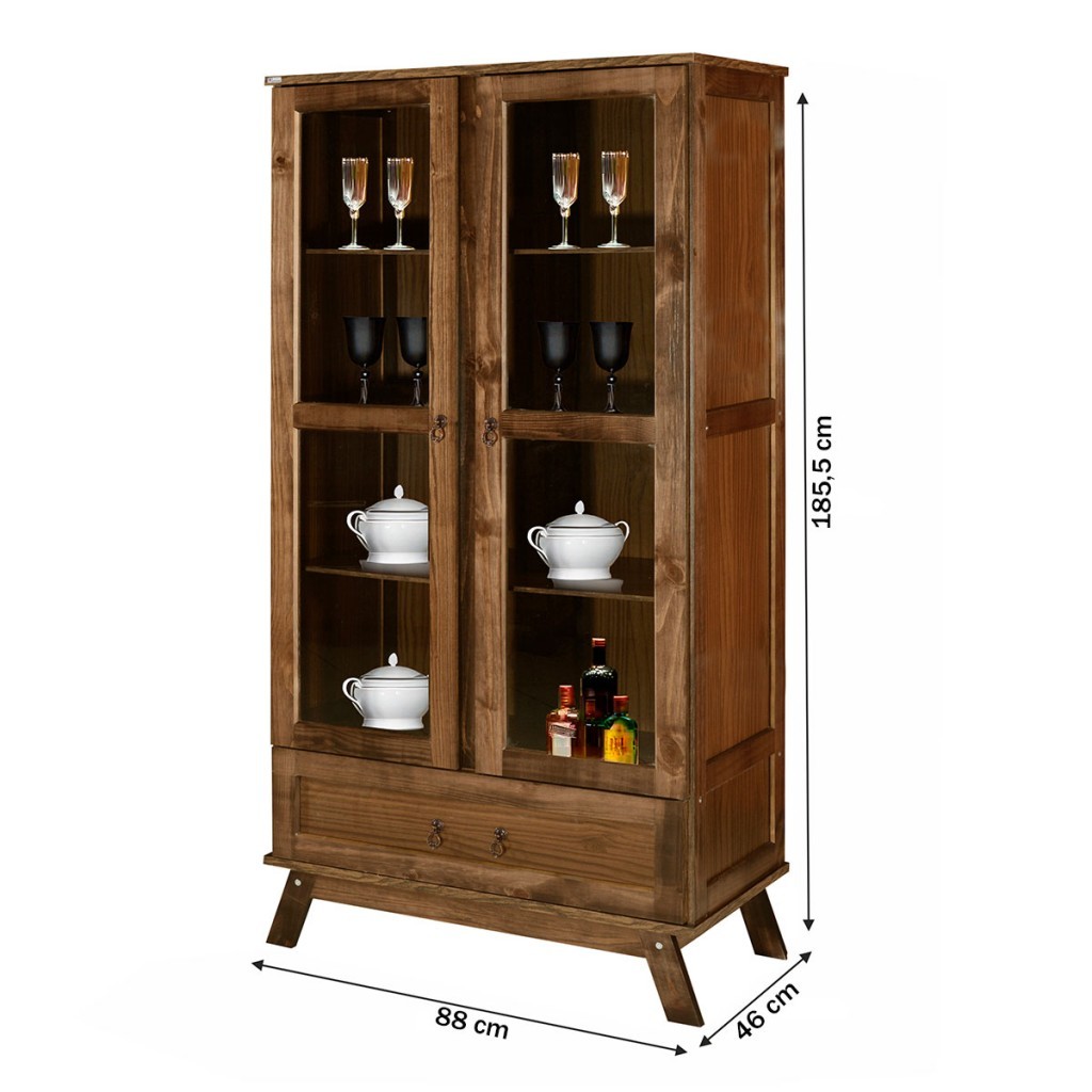 Cristaleira Chile Madeira Maciça 2 Portas 1 Gaveta - Pnr Móveis