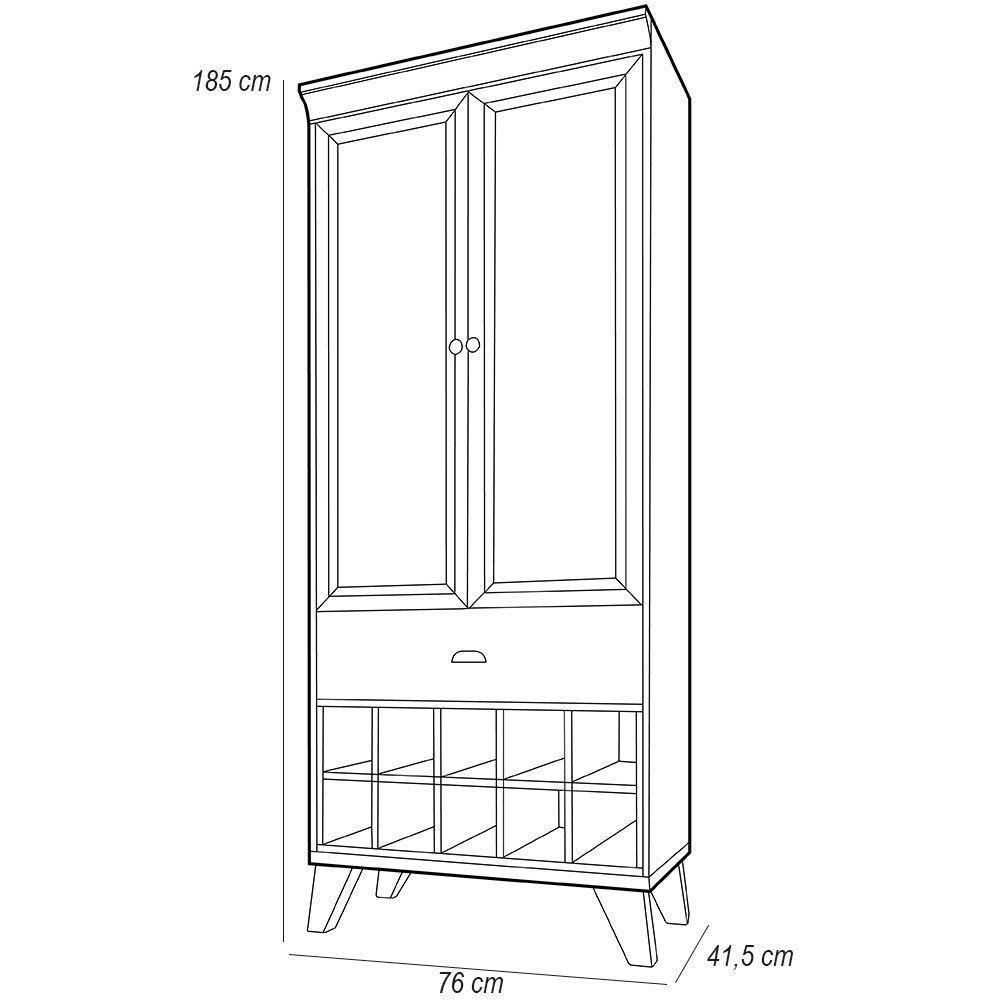 Cristaleira Com Nicho Adega 02 Portas Luma B01 Preto Nature - Lyam Decor Descrição do produto: A Cristaleira desde sempre é um componente de luxo para sala de jantar que remete a elegância, ainda mais quando a inspiração do design é retrô. Este tradicional móvel é perfeito para expor suas louças e cristais e permite total visualização dos mesmos em seu interior. Além das acomodações na parte superior, possui gaveta com amplo espaço e nichos capaz de abrigar até 10 garrafas. Transforme a sua sala de jantar ou estar em um ambiente incrível com a Cristaleira Luma! Dimensões da Cristaleira (L x A x P) 76 x 185 x 41,5 cm Largura da Gaveta: 72 cm Altura entre as Prateleiras: 35 cm Profundidade das Prateleiras: 36 cm Altura do Nicho Adega: 14 cm Largura do Nicho Adega: 12 cm Altura dos Pés: 15 cm Características: Estrutura de MDP e MDF de 25mm e 15mm. Nicho Adega para até 10 garrafas. 2 Prateleiras de Vidro 6mm com suporte cromado. 2 Portas de Vidro emolduradas em MDF e revestidas com papel melamínico. Pés em madeira maciça levemente angulados com acabamento envernizado. Moldura superior robusta valorizando e realçando os aspectos retrô do móvel. 1 Gaveta de amplo espaço com corrediças telescópicas e puxador metálico na cor Bronze. Recomendação de Limpeza: Recomenda-se limpar o produto com flanela ou pano macio seco, não utilizar produtos abrasivos, desengordurantes, álcool ou solvente. Mantê-lo em lugar livre de umidade e/ou exposição direta ao sol. Observações importantes: - Produto para residencial em ambiente interno, não devendo ficar exposto diretamente ao sol, calor e umidade excessivos. - Pode haver alguma diferença de tonalidade entre a imagem e o produto real, por conta do tratamento de imagens e a calibração de cores do seu monitor. - As imagens são meramente ilustrativas, não acompanham objetos de decoração e eletrônicos. - Ao receber a mercadoria, o cliente deve verificar as condições da embalagem, caso haja alguma não assine o comprovante de recebimento. - Montagem, desmontagem e outras instalações serão de responsabilidade do cliente. Não nos responsabilizamos, no ato da , por subir escadas/elevadores ou pelo transporte por guincho em apartamentos. Eventuais despesas são de responsabilidade do comprador. - Confira as dimensões do produto e certifique-se de que passará normalmente por supostos elevadores, portas, escadas e/ou corredores de sua residência. Altura Montado: 185 | Largura Montado: 76 | Profundidade Montado: 42