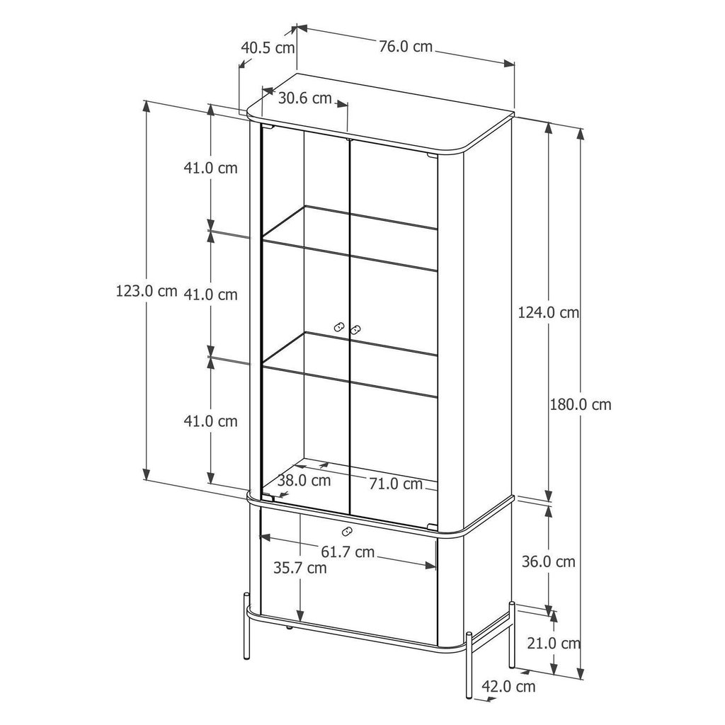 Cristaleira Curva 3 Prateleiras Portas Vidro Pés Metal MDF Off White Dourado Tucupi Off White/Dourado