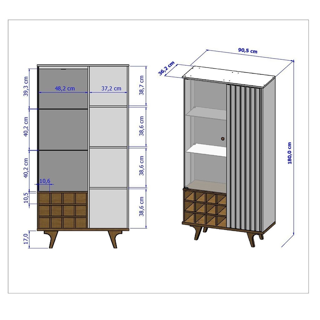 Cristaleira Elba Ripado Real Portas de Vidro Pés de Madeira Maciça 12 Nichos Garrafeiros Naturalle