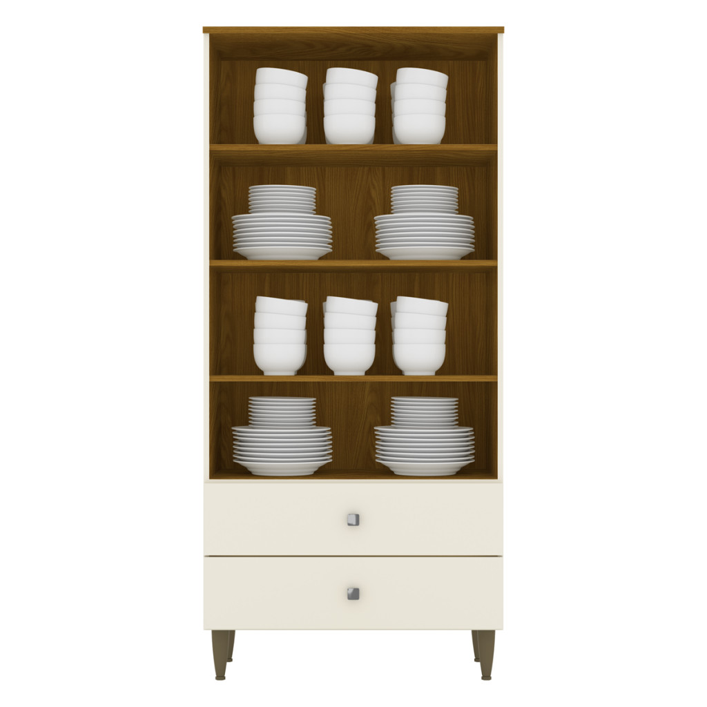 Cristaleira Liz 2 Portas 2 Gavetas Off White/Nature - Henn