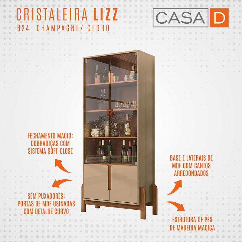 Marca: Casa D; Linha: Sala; Modelo: Cristaleira Lizz; Material da estrutura: MDF de 15 mm e MDP 15 mm com pés de madeira maciça e vidro temperado de 15 mm; Acabamento: Pintura Print Wood; Altura: 179,5 cm; Largura: 85 cm; Profundidade: 36 cm; Quantidade de portas: 04, inferiores com sistema Soft-Close (fechamento macio); Material de dobradiças: Metálicas (Soft-Close); Quantidade de gavetas: Não se aplica; Com corrediças: Não se aplica; Material das corrediças: Não se aplica; Com puxador: Sim, detalhe curvo; Material do puxador: Embutido; Quantidade prateleiras: 04; Com rodízios: Não se aplica; Condição do item: Novo; É kit: Não; Peso suportado: 40 kg; Requer montagem: Sim (kit montagem incluso); Altura da embalagem: 14,3 cm; Largura da embalagem: 43,2 cm; Comprimento da embalagem: 166 cm; Peso: 42,4 kg; Embalagem do envio: Papelão e plástico. Informações adicionais: - Os objetos que ambientam as fotos não acompanham o produto; - O produto será entregue desmontado; - É de inteira responsabilidade do cliente a montagem do produto e/ou instalação, custos de transporte por escadas e/ou elevadores, guincho ou içamento, assim como possíveis irregularidades provenientes de manuseio inadequado; - Embora o produto acompanhe o manual de montagem, verifique a complexidade antes de decidir montá-lo sozinho, recomendamos que contrate um profissional de sua confiança; - Fique atento, nossas cores podem sofrer alterações dependendo do seu monitor; - ANTES DE MONTAR O SEU PRODUTO, certifique-se que todas as instruções dispostas no manual, bem como todas as ferragens descritas, estejam presentes dentro da embalagem. Verifique se há alguma peça danificada, caso esteja, prestaremos a devida assistência dentro do prazo da garantia.