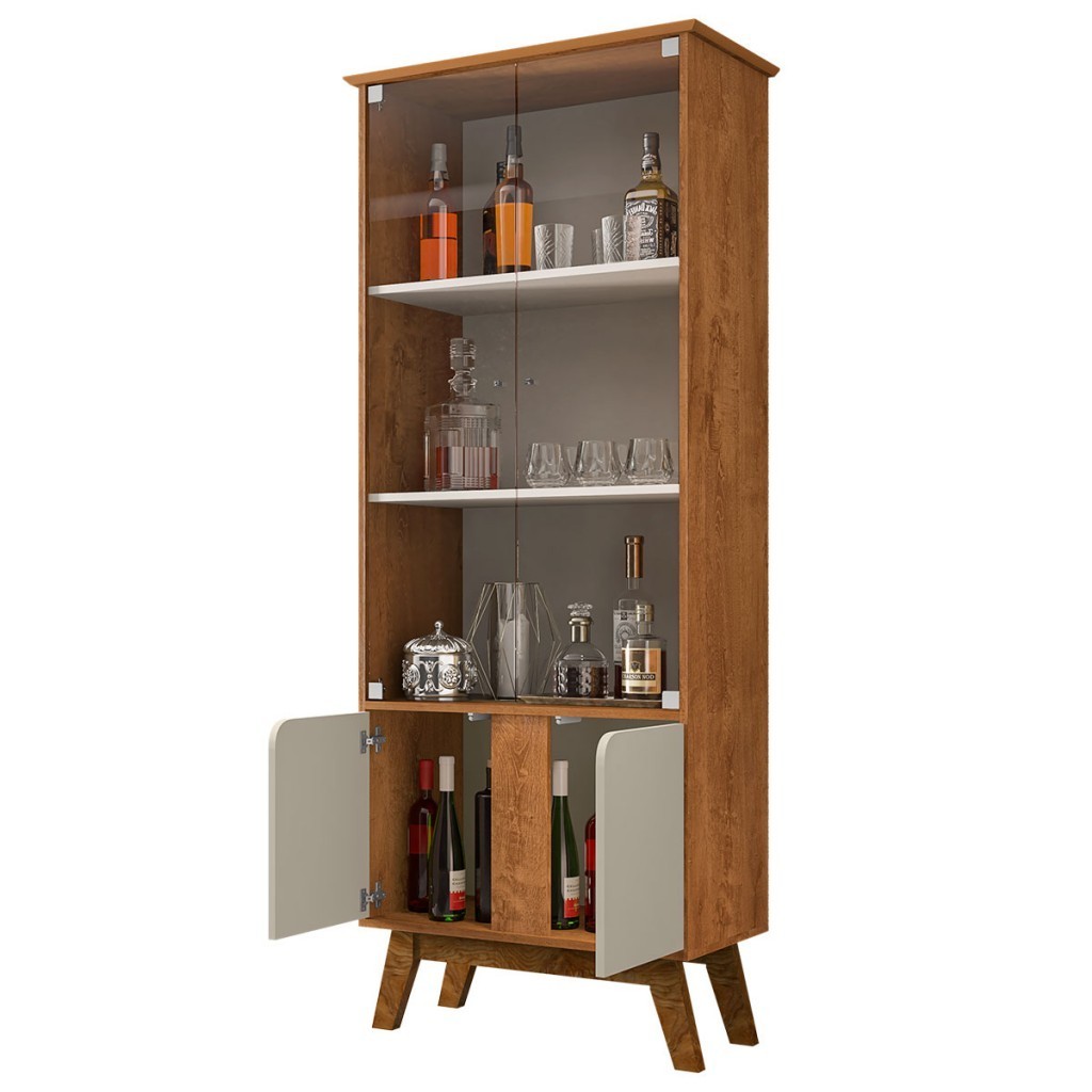 Cristaleira Madri 4 Portas com Vidro Naturalle/Off White - Móveis Bechara