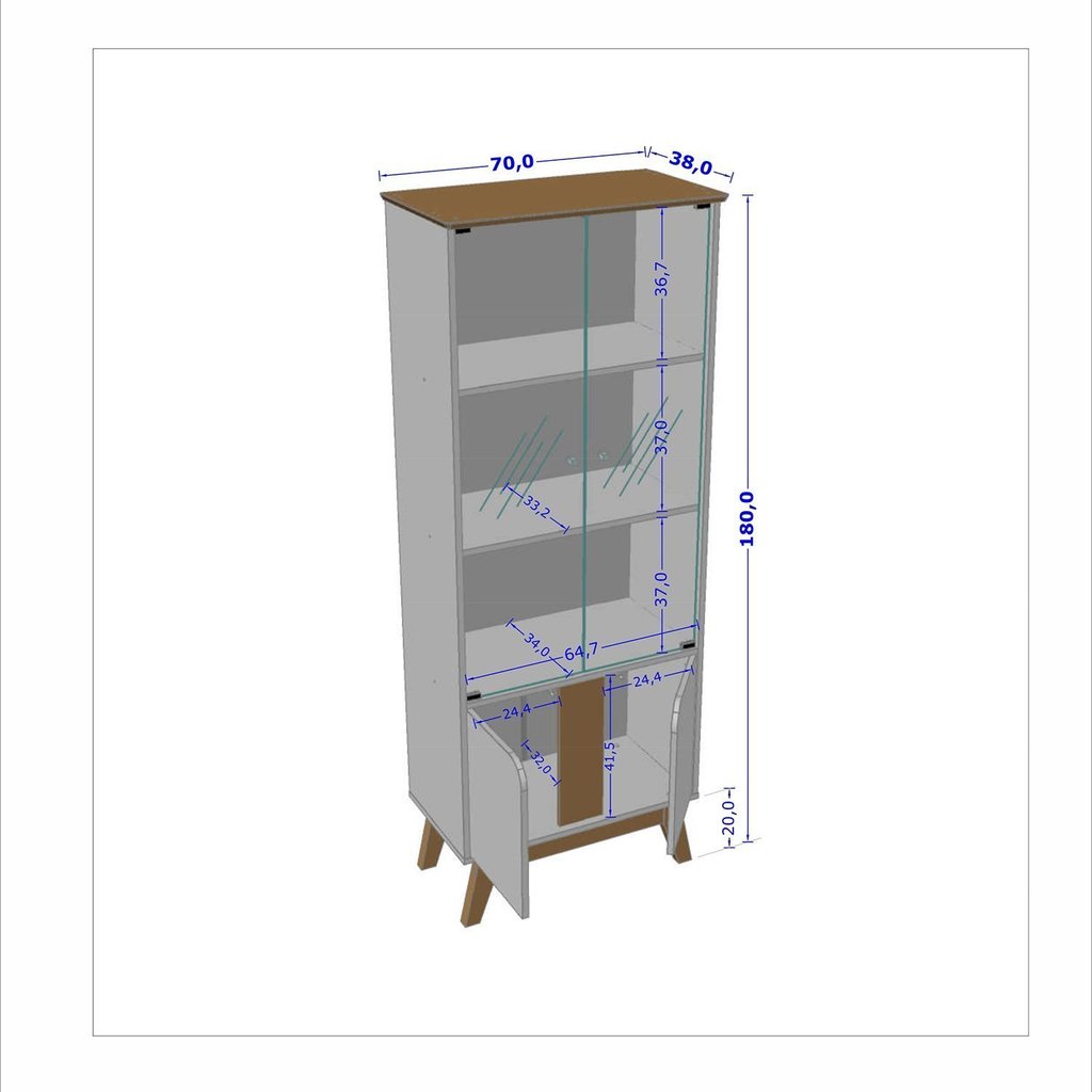 A Cristaleira Madri irá encantar você! Ela possui design retrô, e com certeza irá agregar muito mais charme e requinte ao seu ambiente. Conta com amplo espaço interno dividido por três prateleiras, que irá acomodar perfeitamente todas suas bebidas e taças. Portas de vidro 4mm e puxador de PVC Cromado. Portas inferiores com design curvo e dobradiças metálicas que complementam o charme do produto! Ela possui estrutura elaborada em MDP, tampo em MDF com bordas usinadas em ângulo e pés de madeira maciça, o que garante maior resistência e qualidade ao produto. Estilo: Retrô Peso (kg): 34.2 Garantia: 03 Meses Altura (cm): 180 Acabamento: Pintura UV Largura (cm): 70 Possui Pés: Sim Possui Adega: Não Possui Nichos: 3 Possui Portas: Sim Tipo de Porta: Bater Altura dos Pés: 20 Possui Gavetas: Não Suporta Até (kg): 36 Possui Espelhos: Não Profundidade (cm): 38 Escala de Brilho: Semi-Brilho Material da Porta: MDP Origem do Produto: Nacional Possui Iluminação: Não Acabamento dos Pés: Verniz Ambiente Principal: Sala de Jantar Material Principal: MDF/MDP Possui Prateleiras: Sim Acabamento da Porta: Pintura UV Sapatas Niveladoras: Não Material da Prateleira: MDP Acabamento da Prateleira: Pintura UV Tipo de Puxador da Porta: Não Possui Escala de Brilho da Porta: Semi-Brilho Peso Máximo por Prateleira: 8 Informações Complementares (Novo): Elaborada em MDP de 15mm e MDF de 15mm. Portas de Vidro de 4mm. Pés de madeira maciiça (Pinus). Puxador de PVC Cromado Tipo de Dobradiça/Corrediça da Porta: Metálica Marca: Móveis Bechara Cor: Off White/Cinamomo Cor do Produto: Off White/Cinamomo Itens Inclusos: 1 Cristaleira, Kit Ferragens e Manual de Montagem Cor Predominante: Branco Linha ou Coleção: Decor Quantidade de Prateleiras: 02 Prateleiras Quantidade de Portas: 4 Portas Quantidade de Gavetas: Não Possui