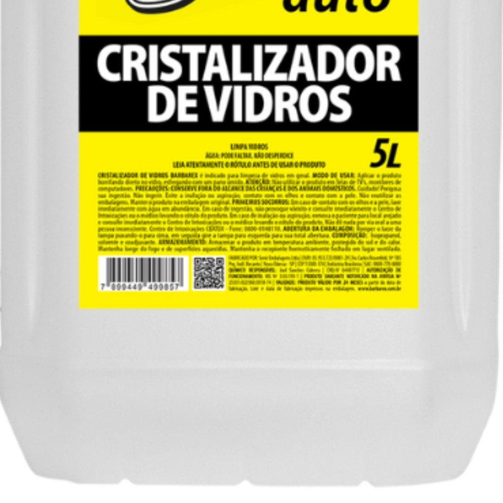 O Cristalizador de Vidros Barbarex Auto é a escolha ideal para quem deseja maior segurança e visibilidade ao dirigir, especialmente em dias chuvosos. Sua fórmula inovadora cria uma película protetora nos vidros, reduzindo o acúmulo de água, poeira e resíduos, proporcionando um efeito repelente e facilitando a remoção da sujeira. Benefícios do Produto: ✔ Efeito Hidrorrepelente – Forma uma película que repele a água da chuva, melhorando a visibilidade ✔ Redução de Sujeira – Evita o acúmulo de poeira e resíduos, mantendo os vidros limpos por mais tempo ✔ Facilita a Limpeza – Remove marcas, manchas e oleosidade com facilidade ✔ Uso Profissional e Doméstico – Embalagem econômica de 5 litros, ideal para lava-rápidos e manutenção automotiva ✔ Indicado para Todos os Tipos de Vidros – Pode ser usado no para-brisa, vidros laterais e traseiros Modo de Uso: Com o vidro limpo e seco, aplique o Cristalizador de Vidros Barbarex Auto com um pano macio ou aplicador de microfibra, espalhando o produto de forma uniforme. Aguarde alguns minutos e remova o excesso com um pano seco até obter total transparência. Garanta já o seu e experimente uma nova forma de dirigir com mais segurança, proteção e visibilidade, mesmo sob chuva intensa!