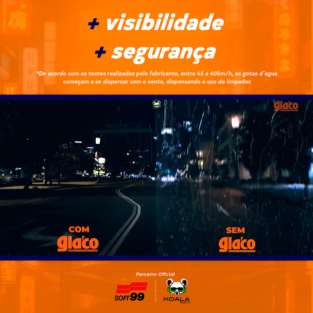 Bem-vindo a Koala Parts! A sua escolha certa para peças e acessórios automotivos - Há mais de 10 anos oferecendo qualidade e confiança. Cristalizador Vidro Big Glaco 120ml Repelente Agua Chuva Parabrisa Chuva no para-brisa? Aqui, ela só escorre! Direto do Japão, o Glaco Big (120ml) é o tipo de produto que muda o jeito como você dirige em dias de chuva. Com uma tecnologia única, avançada e fácil aplicação, ele cria uma camada super hidrofóbica no para-brisa. Resultado? Mais visibilidade, mais segurança e menos uso do limpador. - Até 60% mais visibilidade - Aplicação prática com feltro acoplado - Rendimento de até 25 aplicações (versão 120ml) - Acima de 45~60km/h dispensa o uso do limpador* A tecnologia contida nos produtos da linha Glaco garantem a formação de uma película protetora nos vidros que impede que as gotas de chuva "grudem" na superfície. Durabilidade média de 2 meses por aplicação E sim, pode aplicar em todos os vidros externos — mas se quiser focar só no para-brisa, vai render bastante. BIG GLACO é um cristalizador de vidros desenvolvido para repelir a água que se acumula sobre parabrisas automotivos em dias chuvosos. A tecnologia contida nos produtos da linha Glaco garantem a formação de uma película protetora nos vidros que impede que as gotas de chuva "grudem" na superfície. Essa ação poderosa melhora a visibilidade e, consequentemente, a segurança do condutor. Em deslocamentos acima de 45km/h, o efeito do Glaco se mostra eficiente proporcionando uma ótima visibilidade que, em muitos casos, dispensa até a utilização do limpador de parabrisas. Enviamos bem embalado, super rápido e com garantia de originalidade. A estética do seu carro começa pela clareza com que você enxerga o mundo lá fora. Garanta o seu e confira os outros produtos da nossa Loja - Koala Parts Especificações Técnicas - Tamanho: 120mL - Dirabilidade de até 2 meses - Acompanha feltro aplicador - Rende até 30 para-brisas - Aumento de até 60% de visibilidade Conteúdo da Embalagem -01. Big Glaco repelente de água 120ml Soft99