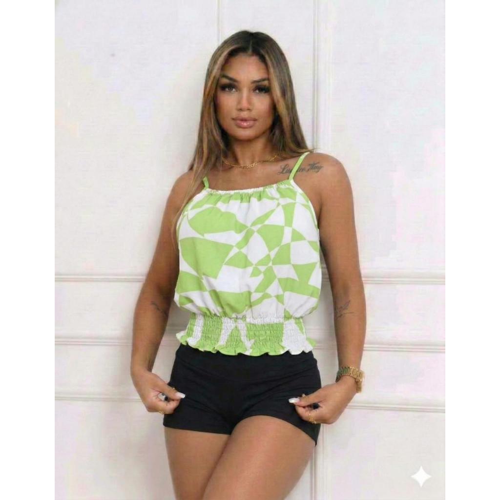 Crooped estampado Femenino LASTEX na cintura,alça regulavél