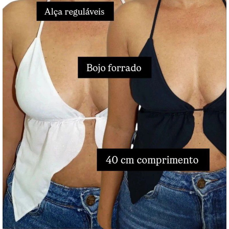 • LEIA ATENTAMENTE A DESCRIÇÃO ANTES DE EFETUAR A COMPRA • Amarração no pescoço • Caimento estilo “folha” • Malhas (VARIADAS) leve e confortável • bojo forrado Preta , branca ou colorida lisa. ( coloridas de acordo com disponibilidade da loja) *foto original do produto. Ideal para compor looks de verão.