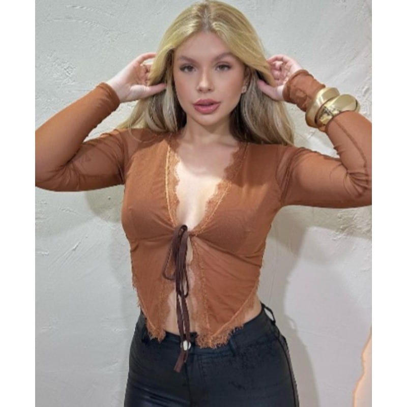 | CROPED BATINHA COM DETALHE ARGOLA TENDENCIA BOHO TECIDO TULE | R$ 52,00 | — | 4.2/5 | 69 |