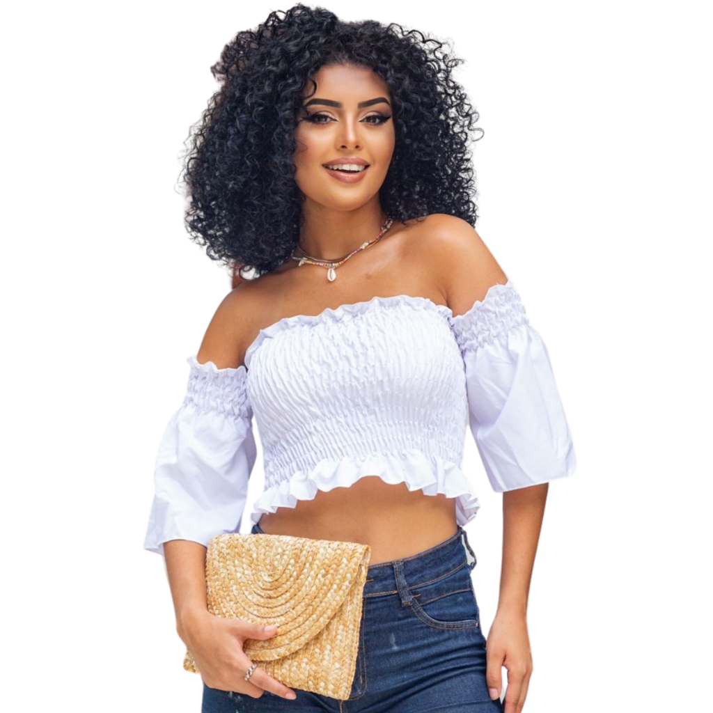 Croped Lastex Ciganinha Manga Longa Feminina Tomara que Caia