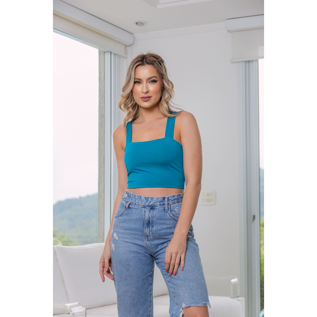 Cropped Alça Grossa Suplex Azul Turquesa