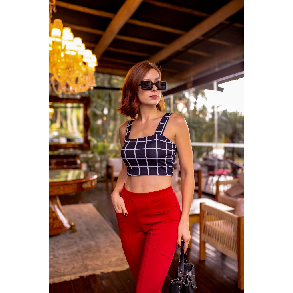 Produtos a pronta entrega para postagem imediata em até 24h ✓ Excelentes preços e ótima qualidade ✓ Fabricação própria ✓ Feito com muito carinho e capricho ✓ Mais de 200 mil estrelinhas e avaliações positivas ✓ Você não vai se arrepender de ter escolhido a Moderna & Slim! Compre e arrase! - Cropped Suplex de Alças Grossas com estampa Xadrez Confeccionado em tecido suplex com elastano. Modelo de Alças. O cropped tornou-se uma peça importante no guarda-roupa, é perfeito para compor looks diversos e se tornou símbolo de autoestima. É uma peça que está associada segurança, liberdade e juventude. Em tecido de excelente qualidade, esse cropped proporciona um ótimo conforto. Peça utilizada frequentemente em casa ou lazer por tratar-se de uma peça versátil e com excelente acabamento. - Medidas aproximadas, sem esticar o produto e considerando as alças: Comprimento: 35 cm Largura: 35 cm (veste 36) - Tamanho P Comprimento: 36 cm Largura: 37 cm (veste 38) - Tamanho M Comprimento: 38 cm Largura: 39 cm (veste 40/42) - Tamanho G *O cropped possui elastano na composição, portanto, possui excelente elasticidade, (estica)! Modelo Veste P: Altura: 1,73 | Busto: 88cm | Cintura: 70cm | Quadril: 90cm | Manequim: 38 - Material: - Tecido: Suplex - Composição: 92%Poliéster 8% Elastano - Sem Bojo. Forrado. Elástico na parte de trás. Não fica transparente - Cores: Xadrez preto e branco, xadrez tradicional, xadrez bordo - Tamanhos P, M, G,GG - Fotos dos anúncios: As fotos e vídeos são reais. As modelos são contratadas pela nossa marca, portanto, as peças retratam fielmente os nossos produtos.