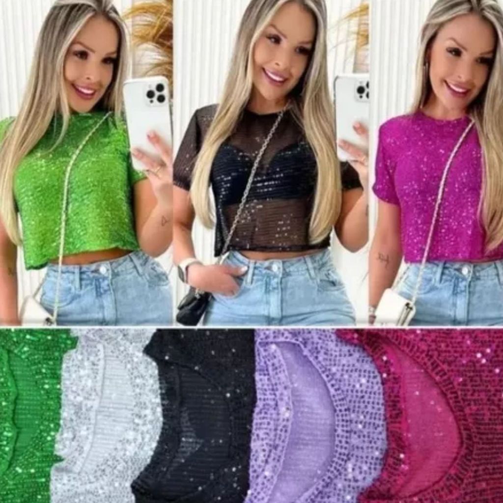 | Cropped Blusa Feminina Manga Curta Paetê Brilhante este produto | R$ 39,99 | — | 4.8/5 | — |