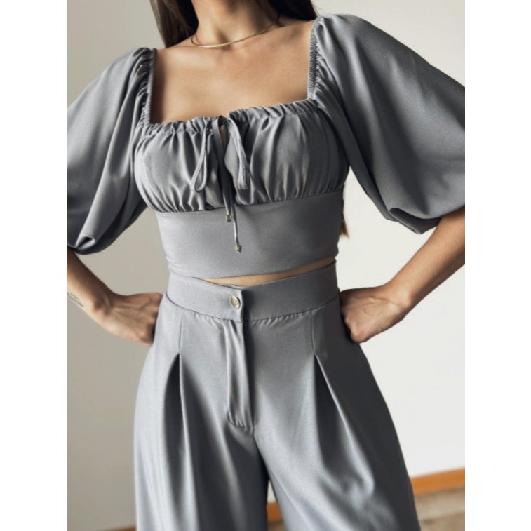 Cropped Ciganinha Feminino Shanti Manga 3/4 Elegante Moda Verão 2025