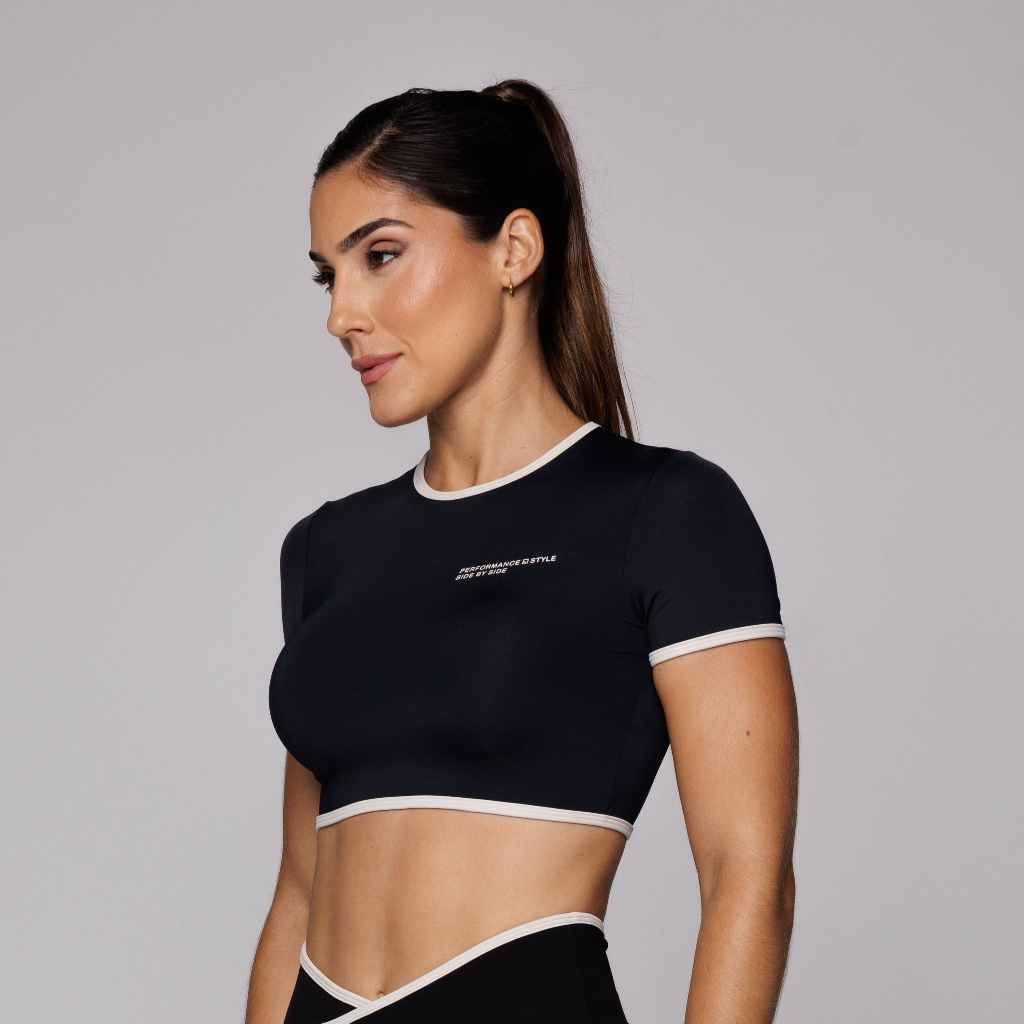 Cropped com Manga Microfibra Barrinha Branca Estampado Coleção Duo