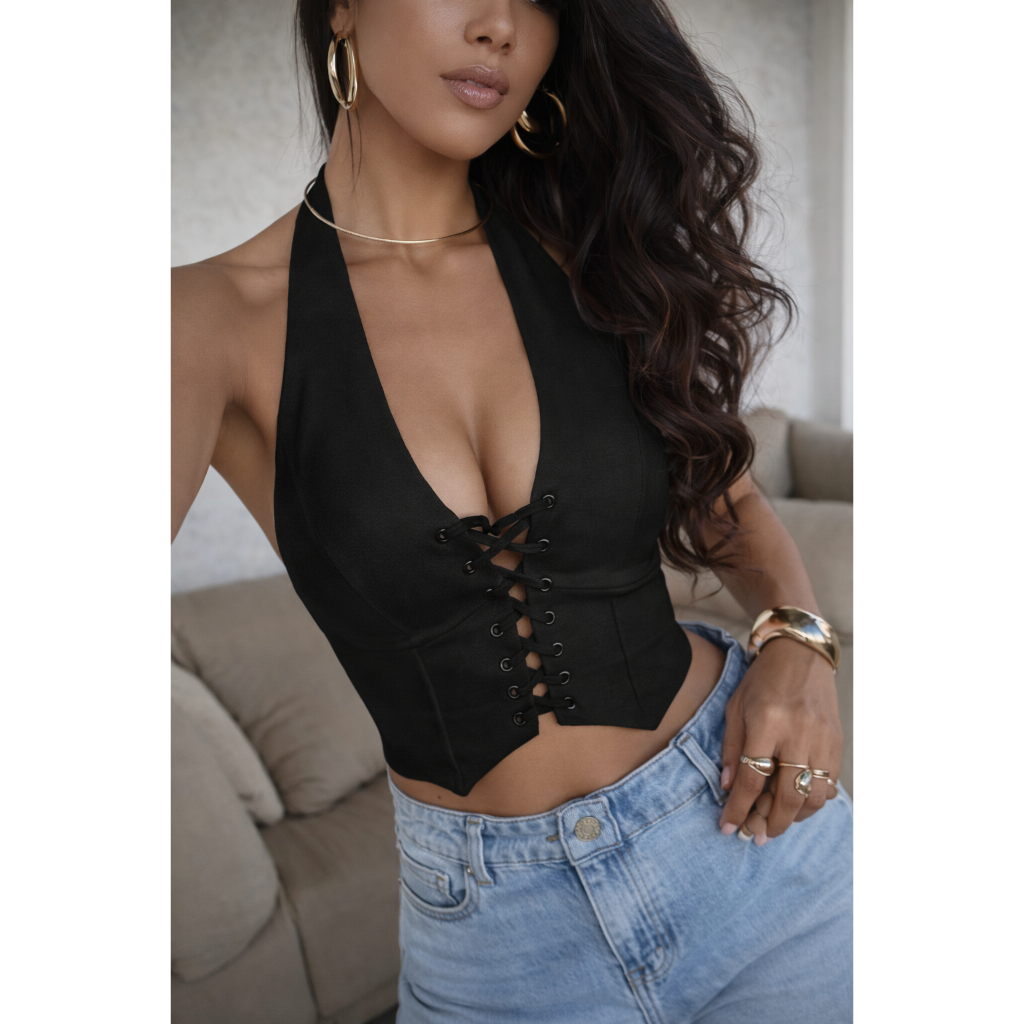 Cropped Corselet Alfaiataria Colete Frente Única