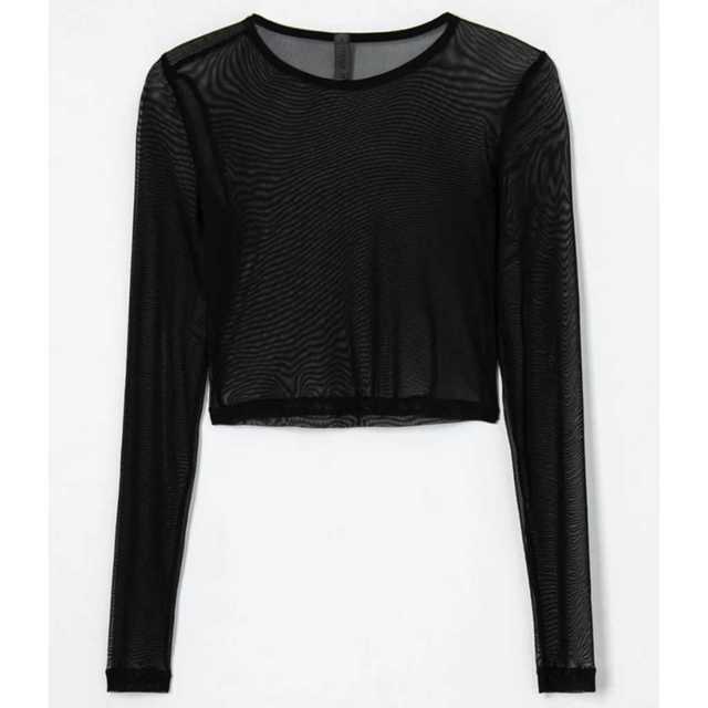 cropped de tule liso preto manga longa