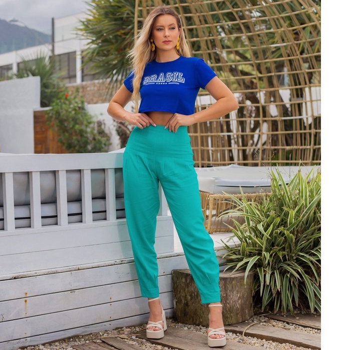✓ Produtos a pronta entrega para postagem imediata em até 24h ✓ Excelentes preços e ótima qualidade ✓ Fabricação própria. Feito com muito carinho e capricho ✓ Mais de 100 mil estrelinhas e avaliações positivas ✓ Você não vai se arrepender de ter escolhido a Moderna & Slim! Compre e arrase! Blusa TShirt Cropped do Brasil Na Copa do Mundo 2022 vamos torcer muito e festejar, e claro, caprichar no look! Não vão faltar opções que traga a alegria da copa e na Moderna tem opções para todos os estilos. Quer buscar autenticidade? Aposte no pretinho básico com o nome do Brasil. Você tem é daquelas que prefere um look mais descolado? O cropped azul é uma excelente opção pra você! - Tamanho P (36) - Comprimento: 39 cm Largura: 45 cm - Tamanho M (38) - Comprimento: 40 cm Largura: 46 cm - Tamanho G (40) - Comprimento: 41 cm Largura: 48 cm A modelo veste P: Altura: 1,73 | Busto: 88cm | Cintura: 70cm | Quadril: 90cm | Manequim: 38 Material: - Tecido: Viscolycra - Composição: 95% Viscose 5% Elastano - Sem Bojo. Não fica transparente - Cor: Preto e Azul - Estampa: Nome Brasil Selecione o item desejado ao seu carrinho e faça sempre a conferência dos itens. Com o pedido finalizado, não é possível alterar informações como, por exemplo, itens escolhidos, tamanho ou cor. A equipe operacional, não tem acesso ao chat, portanto, não é possível modificações. NÃO É PERMITIDO TROCAR O TAMANHO E/OU COR Fotos dos anúncios: - As fotos e vídeos são reais. As modelos são contratadas pela nossa marca, portanto, as peças retratam fielmente os nossos produtos.