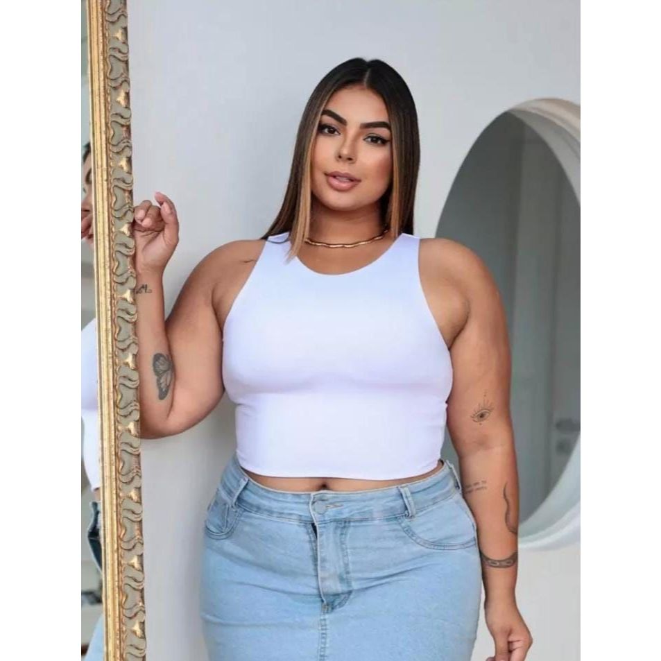 CROPPED ESTILO FEMININO PLUS SIZE REGATA BÁSICA ESSENCIAL NO SUPLEX TODO DUPLO