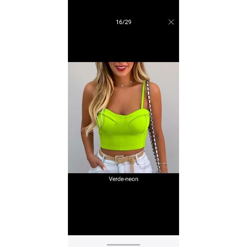 | cropped top corselet tomara que caia estruturado com bojo | R$ 31,99 | 54% | 4.6/5 | 2 |