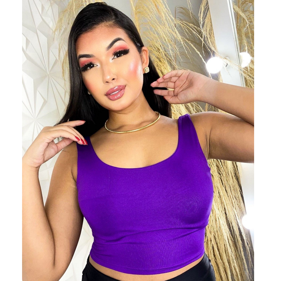Cropped Feminino Alça Grossa Top Bali Com Forro Duplo Fitness Academia Suplex