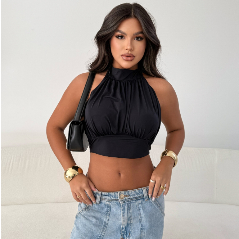Cropped Feminino Balone Com Bojo E Gola Alta Plissado Costa Nua ✅Sobre o produto: ✔ Tamanhos do P ao M - 36 ao 42 ✔ Tecido composto por: 92% poliéster 08% elastano ✔ Fabricação própria ✔ Contém: bojo ✔Costas nua ✔Golinha alta ✅Diferencial do nosso produto: ✔ Excelentes preços e ótima qualidade ✔ Fabricação própria ✔ Tecido suplex ✔ Costura reforçada 🚚 Envio Super Rápido