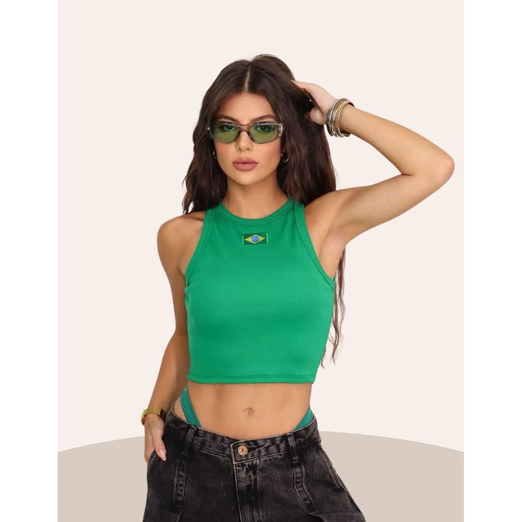 Cropped Feminino Brasil Ribana Canelada Estilo Copa Confortável Moda Verão
