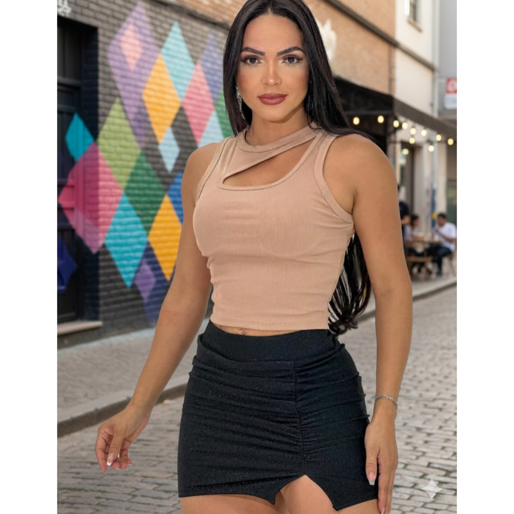 Cropped Feminino Canelado Recorte No Busto Confortável Casual Versátil Tendencia Moda Primavera Verão