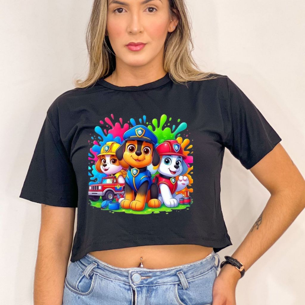 Cropped feminino estampa patrulha canina colorida camiseta t-shirt
