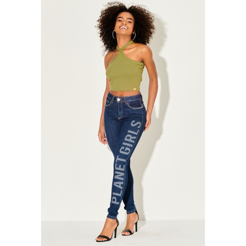 Cropped Feminino Liso Alça Cruzada Planet Girls Verde Escuro
