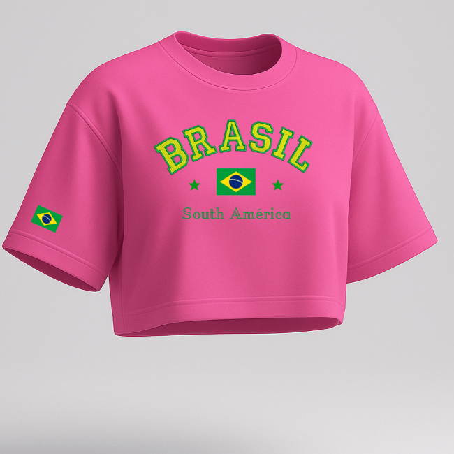 Cropped Feminino Oversized – Bandeira do Brasil, Estampa Premium, Moda Casual