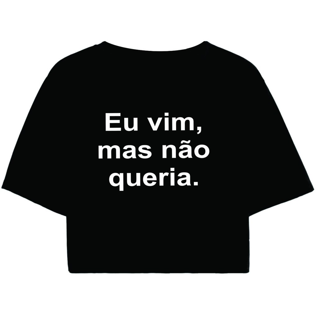 Cropped Feminino Preto Tumblr blogueira Eu vim, mas não queria. feminina manga curta