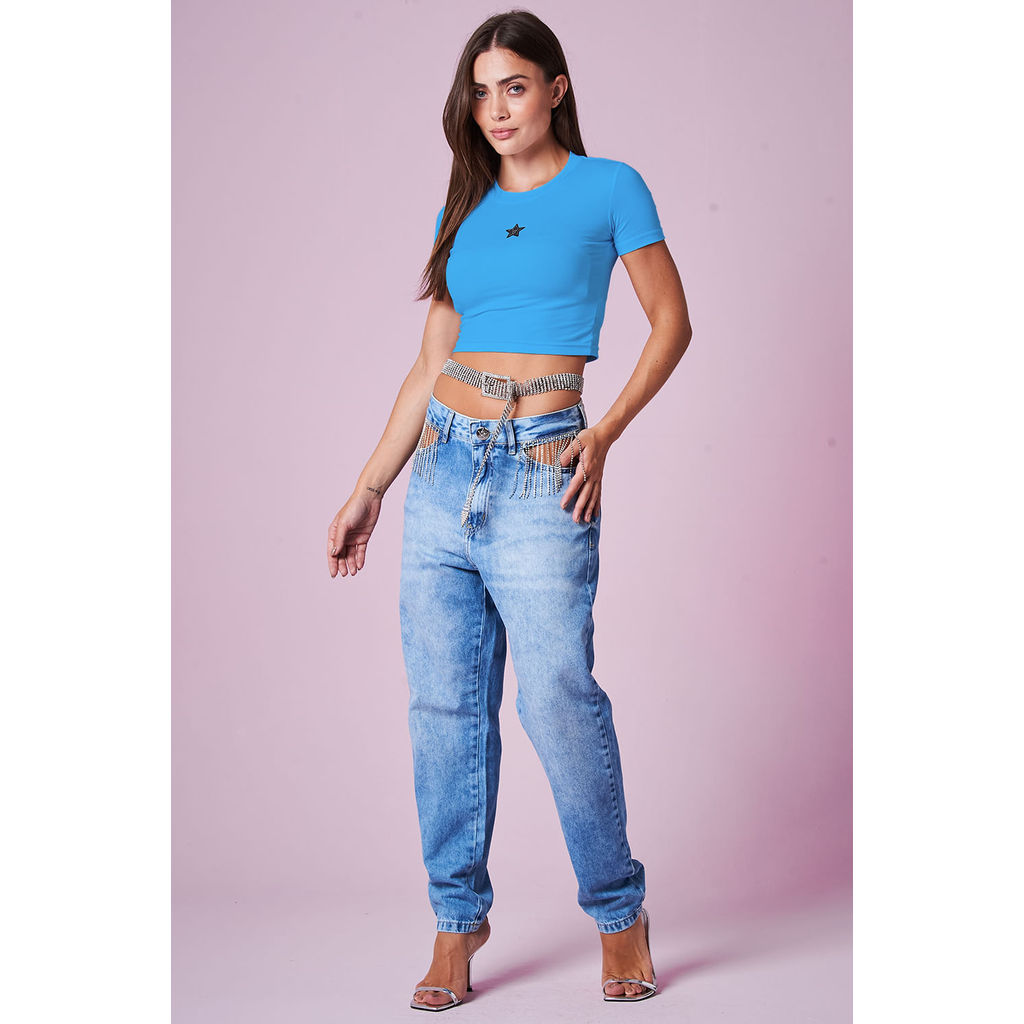Cropped Feminino Slik de Estrela Planet Girls Azul Médio