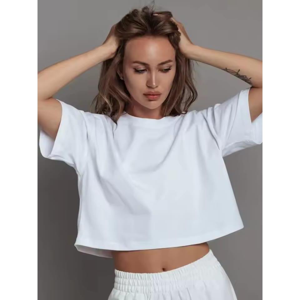 Cropped Feminino T-shirt Liso Manga Oversized Academia Treino Blusinha Lisa