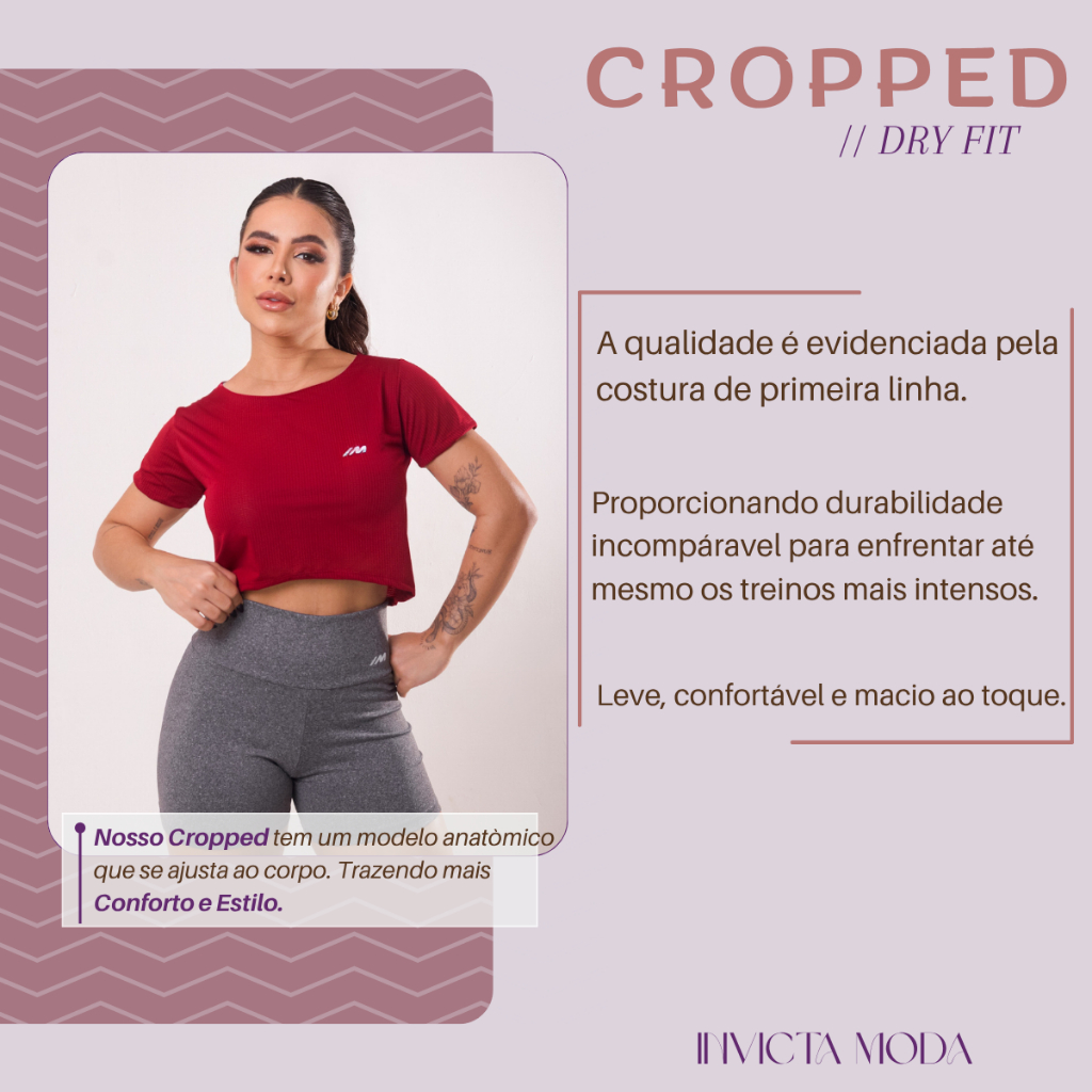 Cropped Academia Feminina Malhação Caminhada Corrida Esporte ✅ Sobre o produto: ✔ Confeccionada em tecido Dryfit (furadinho) ✔ Tamanhos do M ao GG ✔ Ideal para atividades físicas ✅ Diferencial do nosso Produto: ✔ Tecido Anti Odor ✔ Secagem rápida ✔ Diversas cores pra você aproveitar ✔ Tecido de alta qualidade ✔ Confortável para qualquer atividade física ✔ Não dá bolinhas ✔ Não desbota na lavagem ✔ Não encolhe ✔ Envio rápido ✅Produtos a pronta entrega, envio realizado em até de 12 horas úteis ⚠️ATENÇÃO: SELECIONE AS CORES ATRAVÉS DO CARRINHO, NÃO SERÃO ACEITAS TROCAS DE CORES APÓS O PEDIDO FEITO VIA CHAT. CASO TENHA DIFICULDADES EM SELECIONAR AS CORES, ENTRE EM CONTATO CONOSCO. ⚠️DICA IMPORTANTE: FICOU NA DÚVIDA NO TAMANHO? OPTE SEMPRE PELA NUMERAÇÃO MAIOR.