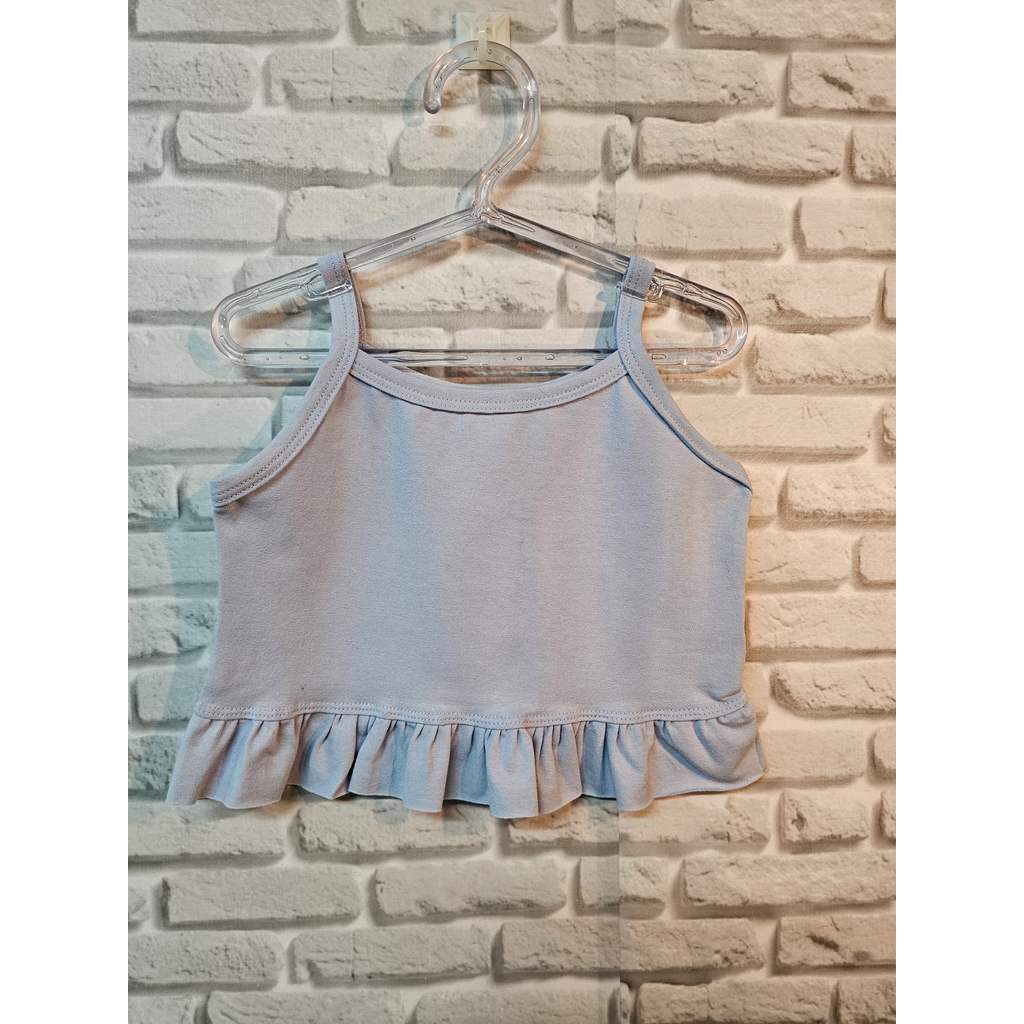Cropped Infantil em Cotton com Babados Lindo cropped infantil confeccionado em cotton macio, super confortável e fresquinho — ideal para os dias mais quentes! Modelo com alças finas e babadinho na barra, trazendo um toque delicado e cheio de charme. Perfeito para combinar com shorts, saias ou calças leves! Tecido: Cotton (macio e elástico) Composição: 96% Algodão 4% Elastano
