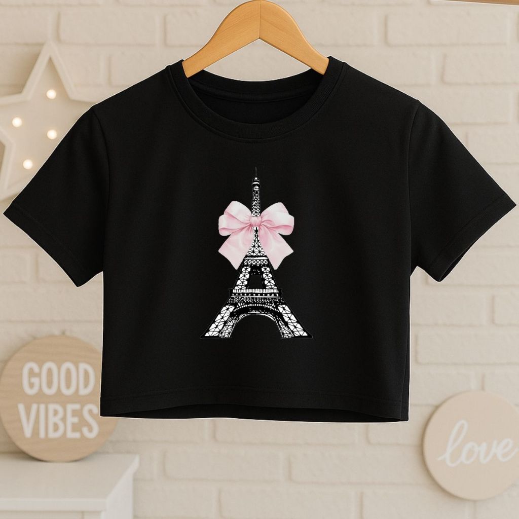 Cropped Infantil Oversized Paris Manga Curta Verão 100% Algodão Mini Blogueirinha Modinha Fashion Meninas