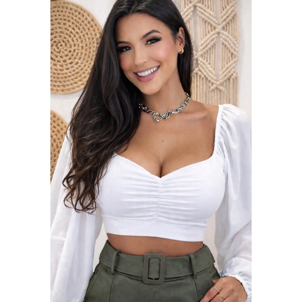cropped juliette manga longa bufante tule blusinha com bojo blusa festa elegante