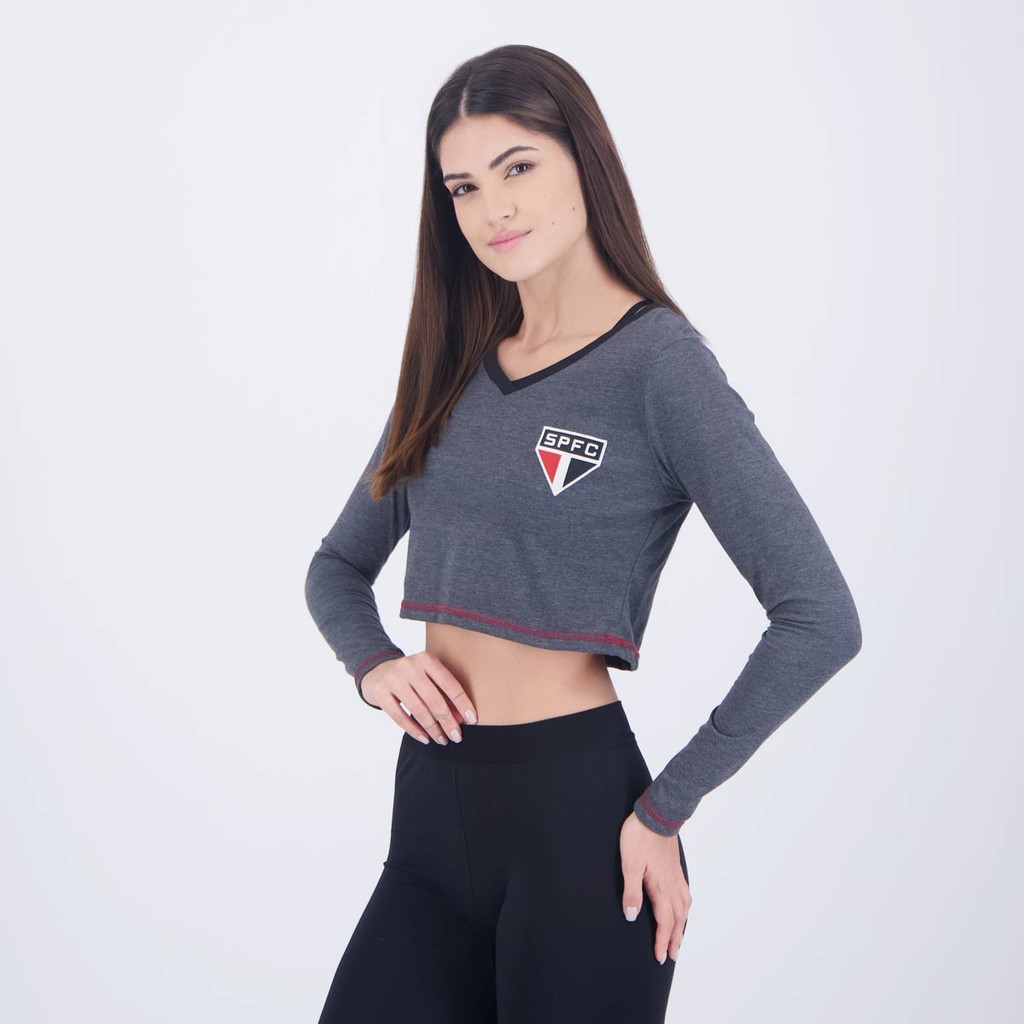 Cropped Manga Longa São Paulo Pond Feminino Cinza Escuro
